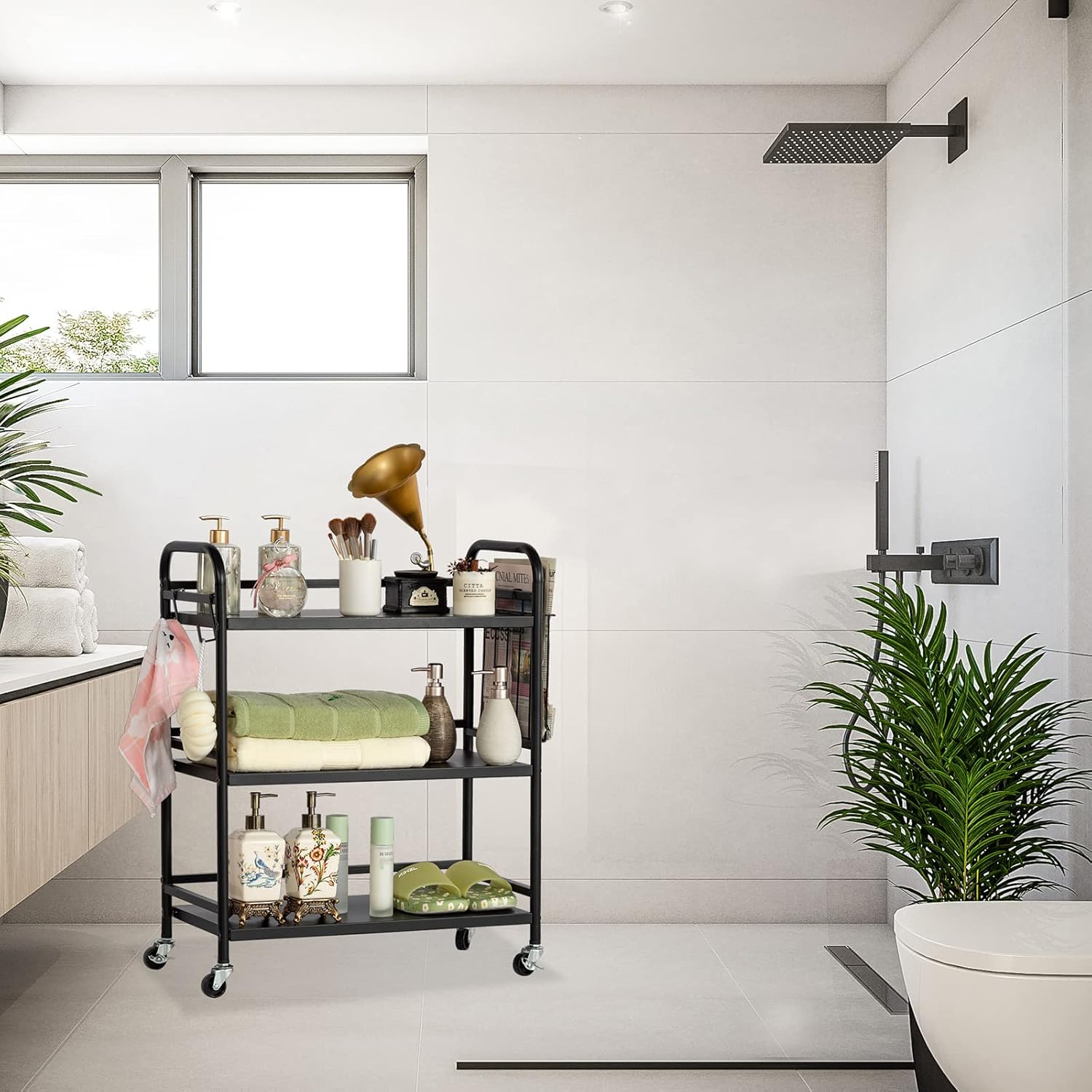 HDANI 3 Tier Metal Rolling Utility Cart,High Capacity Multi Purpose Heavy Duty Cart,for Office,Kitchen,Living Room,Bedroom,Etc.(Black)…