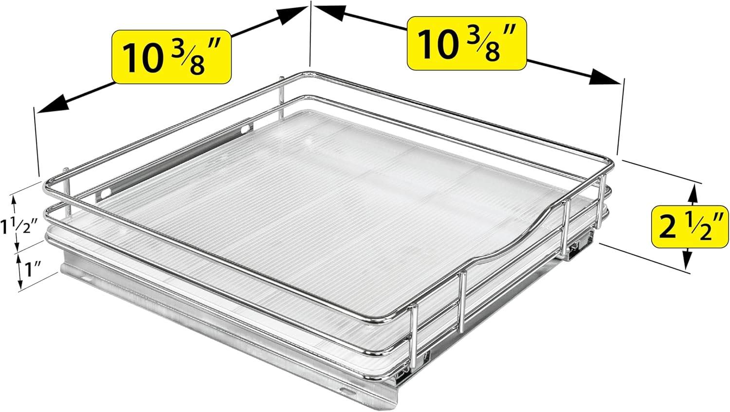 - OUR UNIQUE 1/8” THICK HEAVY-DUTY POLYMER TRAY securely locks in place safeguarding your cupboards against spills and prevents small items from falling over