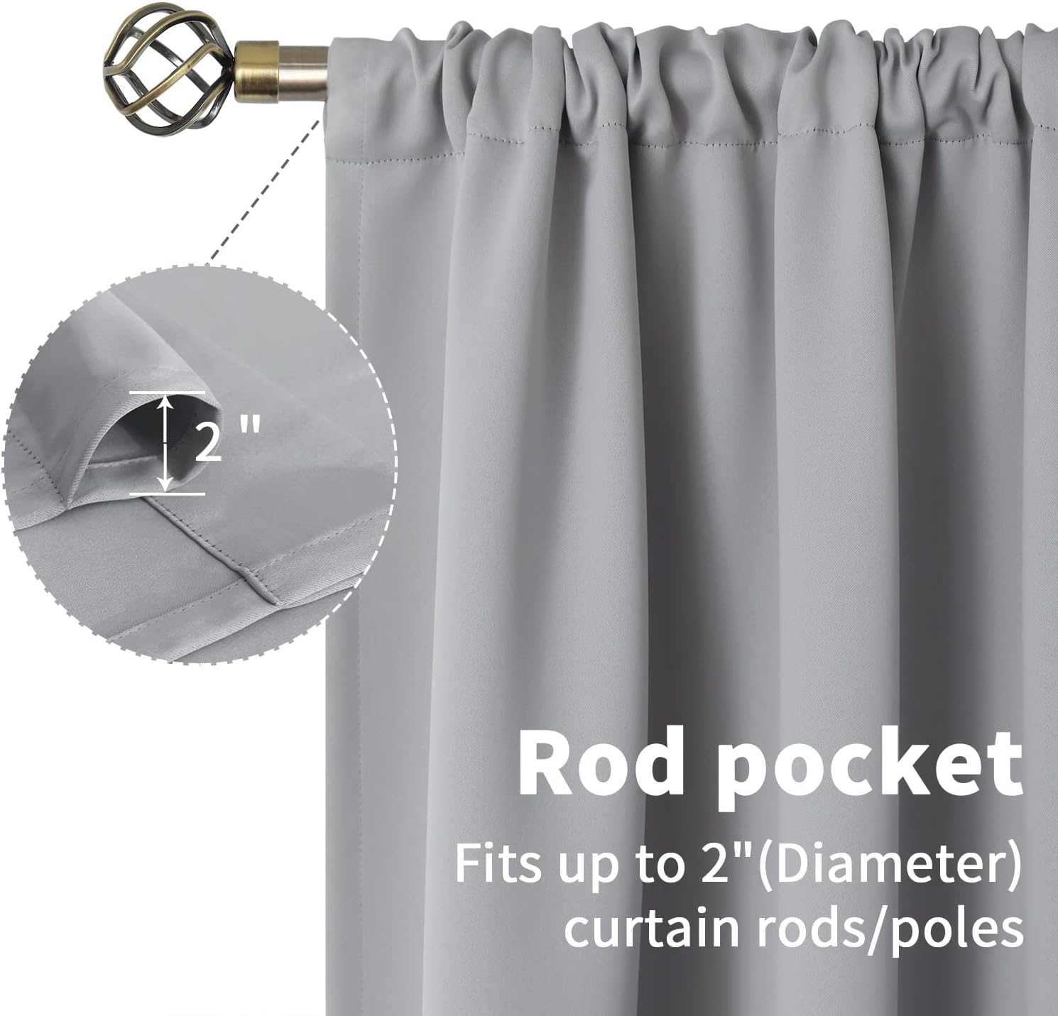 - Rod Pocket Construction: Our block out curtains are with 3 inches rod pocket on top, fits most standard rods and makes the maximize coverage of your windows with no gap. Protect your privacy.