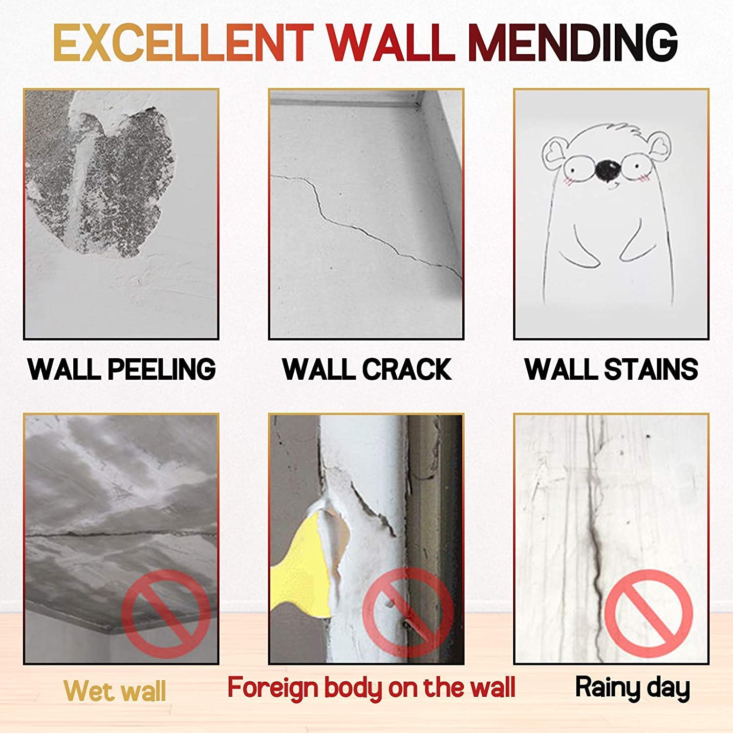 - Perfect Repair: Getting a professional-quality Drywall repair kit for your damaged and chipped wall has never been easier. Wall Mending Agent has very strong adhesion, just extruding and scraping for a quick fix (Please be sure to wear gloves). No need to call a repair for restoration-Restore your HOME's former glory using our Drywall hole fixing Kit