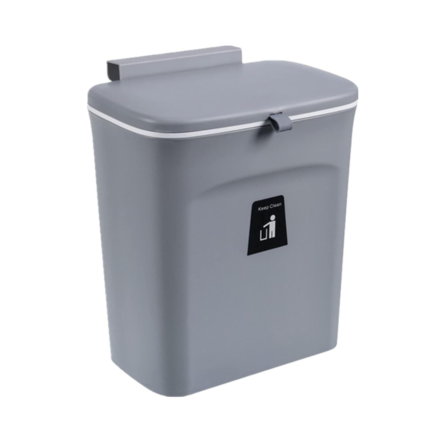 TOPROAD Kitchen Hanging Trash Can, 2.4 Gallon Wall Mounted Counter Waste Compost Bin, Small Garbage Can with Lid for Cupboard/Bathroom/Bedroom/Office/Camping/Under Sink(Grey)