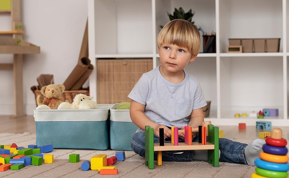 - STORAGE BIN & PROFESSIONALLY & PRACTICAL - 16Lx12Wx8H; TheWarmHome cube storage bins provide a solution to most needs: organizing and storing baby products,clothes,shoes,kid’s toys,pet products, toiletry storage, laundry,towel, blanket, bedsheet, sport gears, tissue,hats, scarves,socks,keys or other small items.can be used in bedroom, living room, study room,rest room,bathroom, kitchen,office,shelf, closet and cabinets.excellent choice for keeping your space nice, tidy and organized
