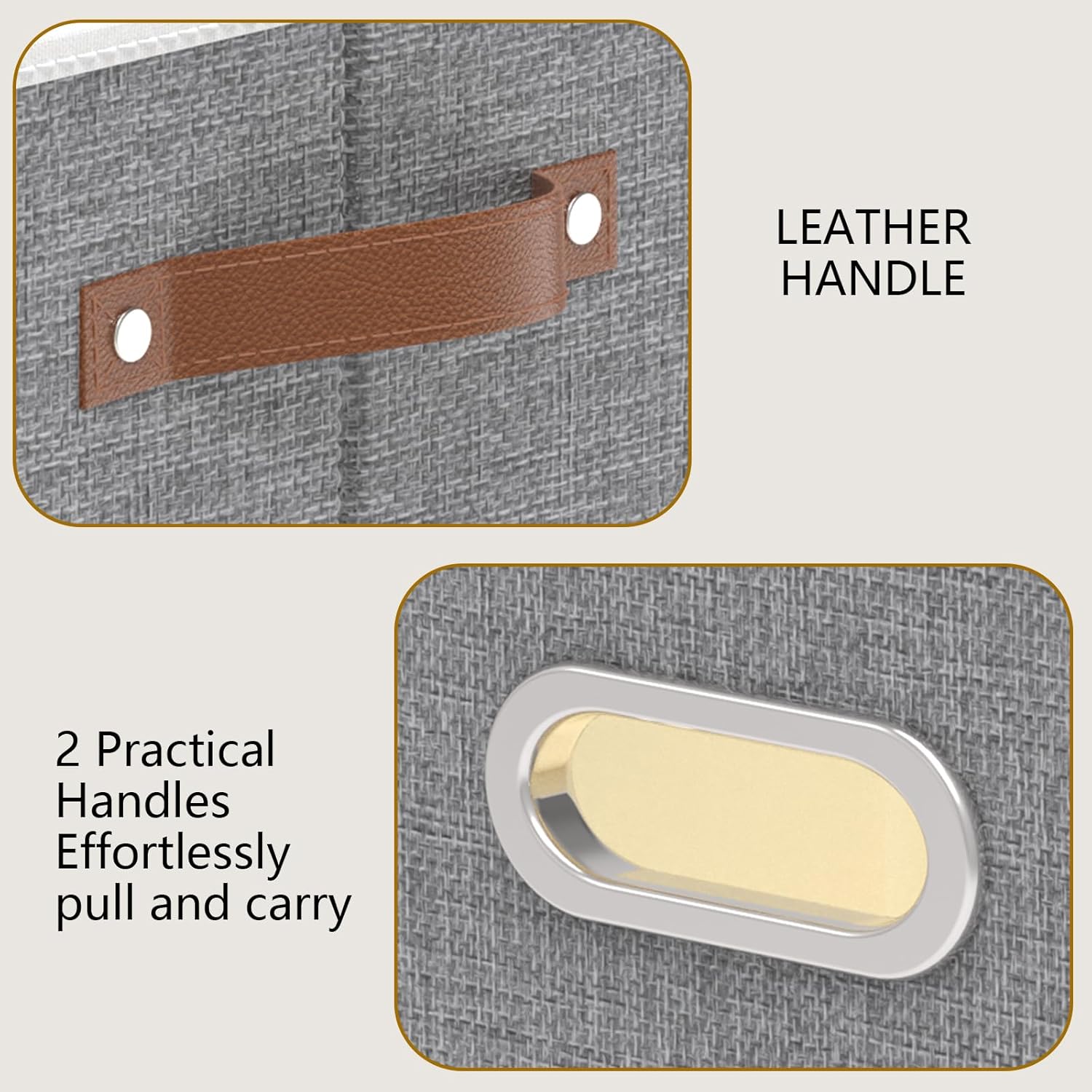 - Design of Storage Box Handle : Adds the vision of fabric storage bins, making it easier to lift the closet storage bins off the floor or pull out from a shelf to access your items, 1 handle is made of stainless steel, not easy to rust