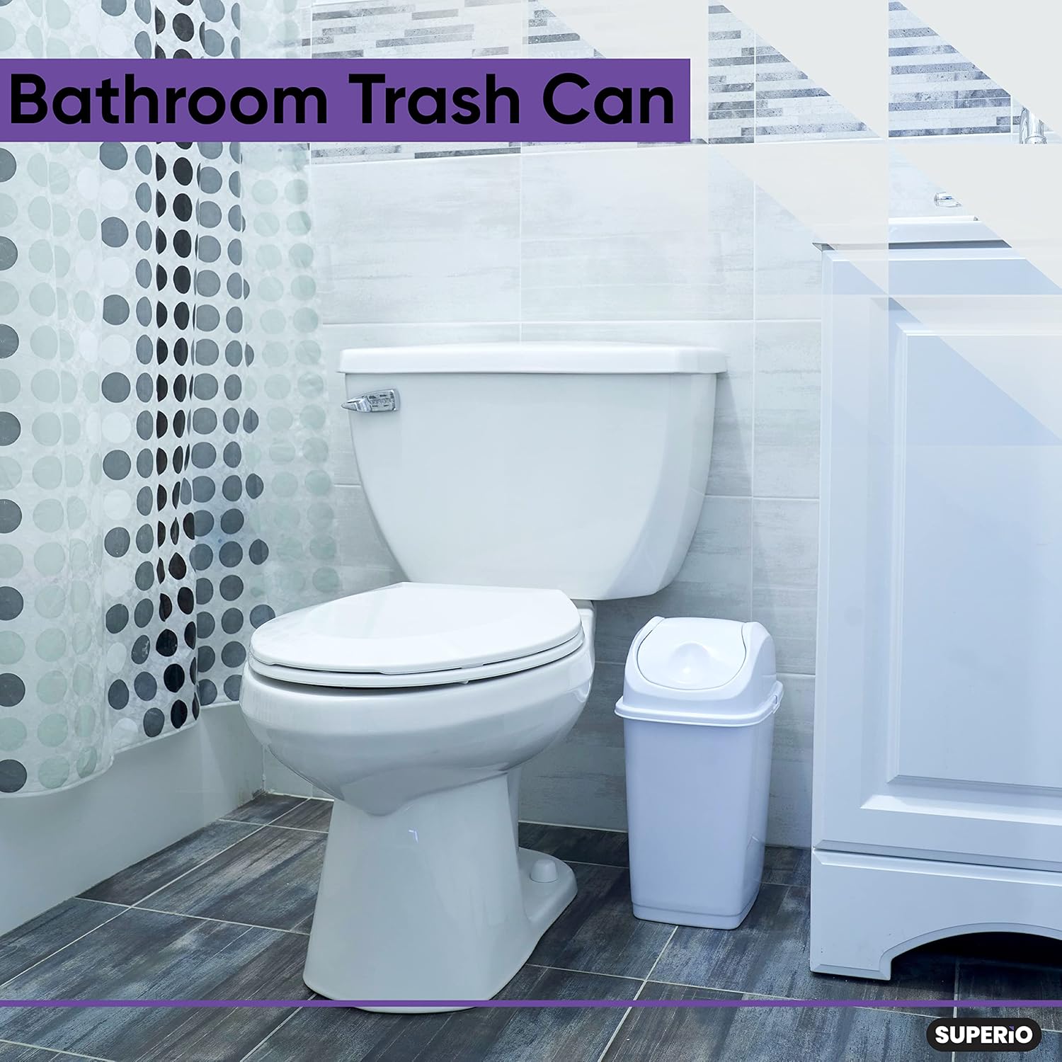 Superio Medium Trash Can with Lid 4.5 Gallon Plastic Swing Top Garbage Can Slim Waste Bin for Under Sink/Cabinet, Laundry Room, Kitchen, Office, Bedroom, Bathroom, College Dorm, 18 Qt, Grey