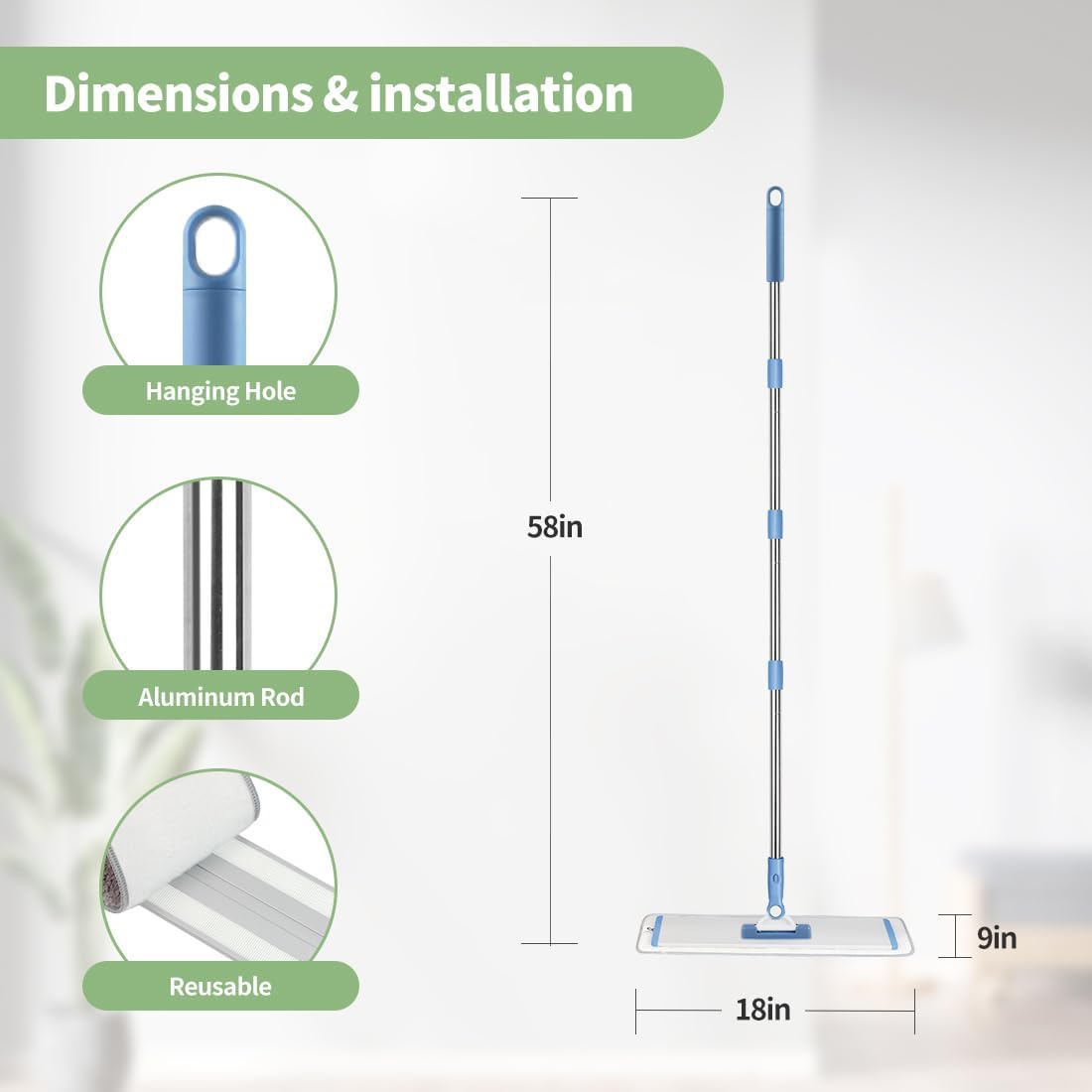 - 【Humanized height adjustment】:58 inch extendable pole design with easy adjustment of height range of 40-58 inches, suitable for users of different heights to stand, clean without bending over, labor-saving and efficient