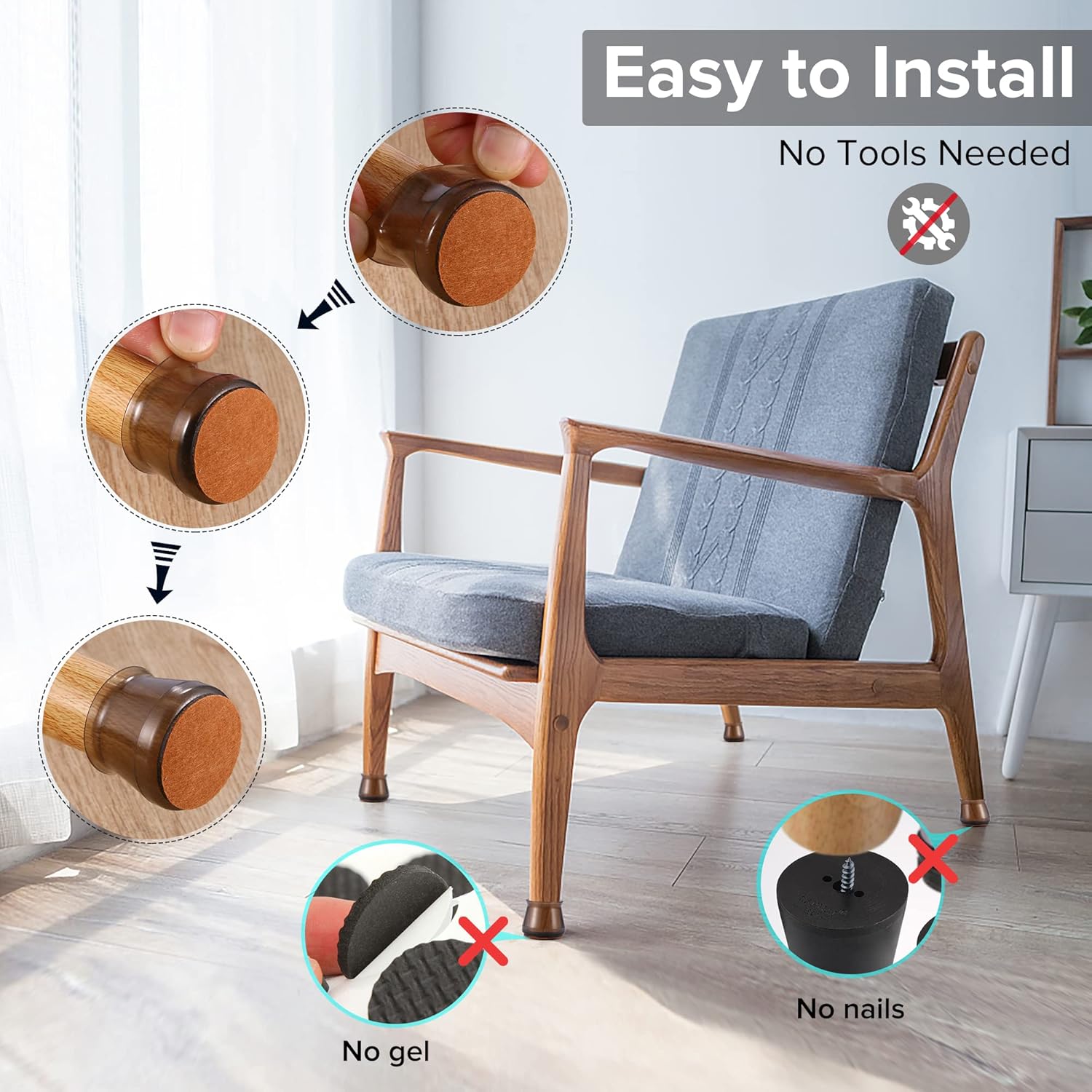 - ✅【Latest Upgrade】Compared with most of the traditional 1mm furniture pads on the market, our chair leg floor protectors are made of 2mm thick silicone, which will never be damaged, durable. The chair leg protectors will not change color when stretched. Inside of the inner sleeves are particles with anti-slip, which will firmly fix the chair and never make the covers fall off. Felt pads at the bottom make your furniture move silently and smoothly along floors without leaving marks and noise.