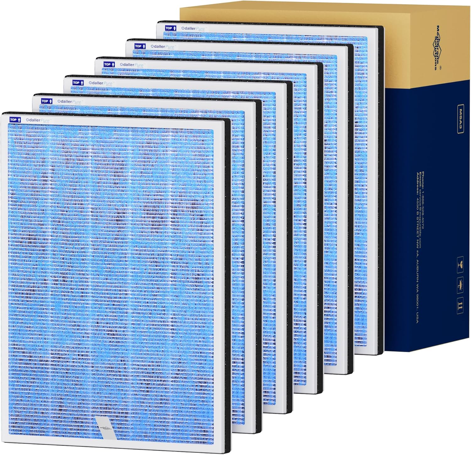 Membrane Solutions MSA3/MSA3S Genuine Original Air Purifier Filter Replacement 6 Pack, Upgraded 4-in-1 H13 True HEPA Filter with OdallerPure Technology