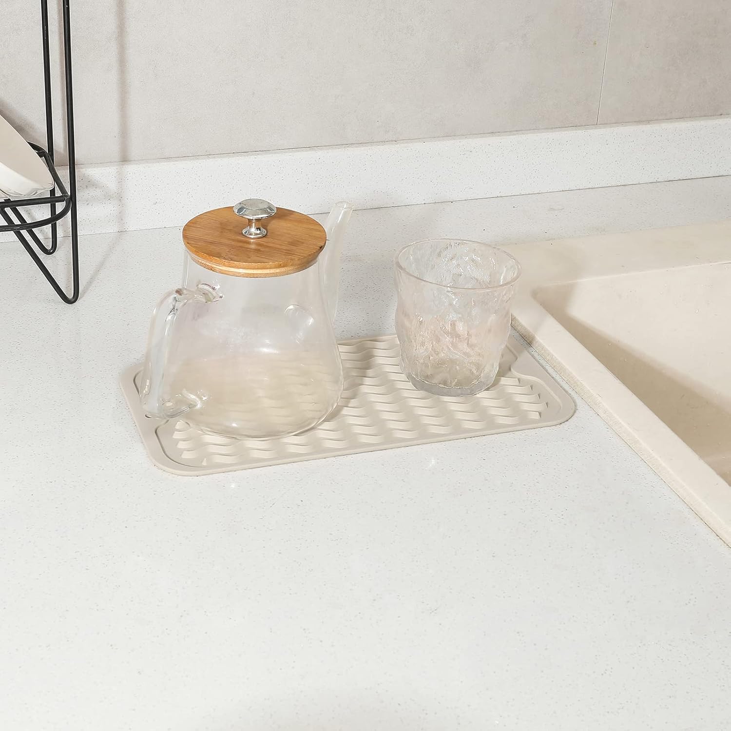 Silicone Dish Drying Mat for Multiple Usage,Easy clean,Eco-friendly,Heat-resistant Silicone Mat for Kitchen Counter or Sink,Refrigerator or Drawer Liner Tapioca S 12 inches x 6 inches
