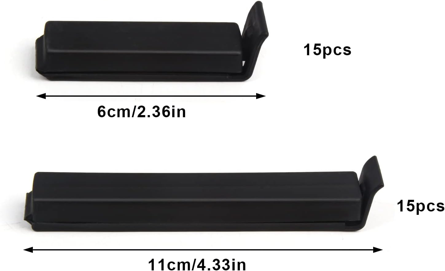 - 【Value Pack】- 30 pack durable black bag sealing clips with 2 sizes (2.4" x 15, 4.34" x 15). Suitable for sealing bags of different sizes, Make your storage easier.