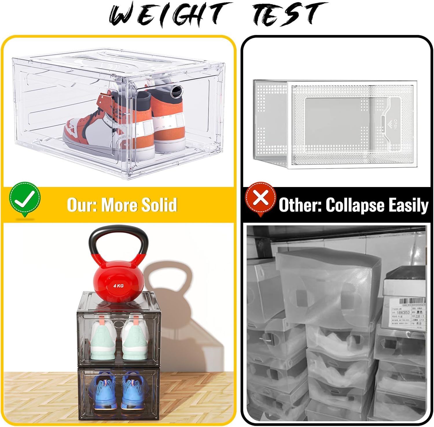- Hard Clear Plastic Transparent: the shoe organiser is made of hard plastic on all six sides. The thick plastic panels ensure durability and the transparent design allows you to instantly recognise the shoes you'll be wearing today.