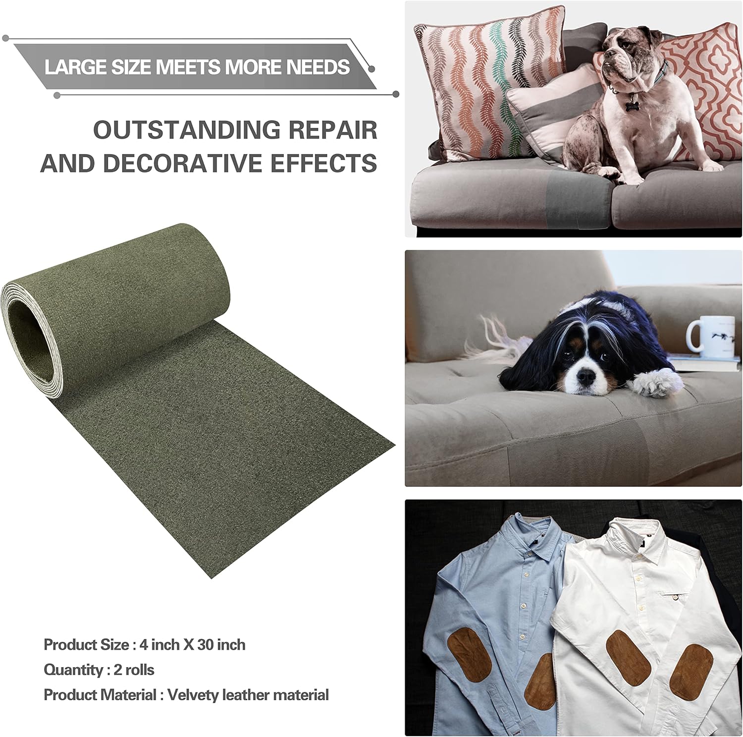 Azobur Sofa Fabric Repair Patch, Oversized Microfiber Patch, Self-Adhesive Repair Fabric, Super Cost-Effective (Olive Green)
