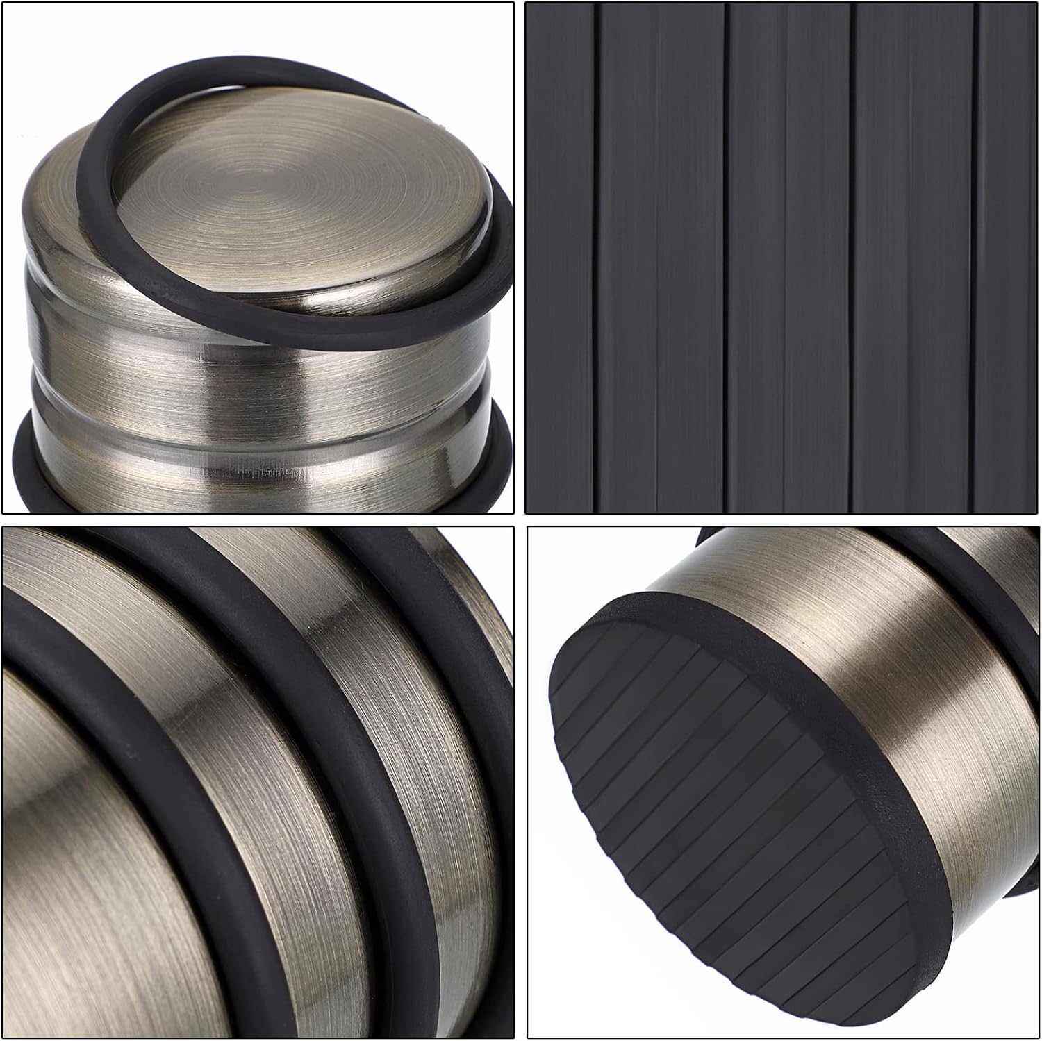 - FUNCTION AND STYLISH STOPPER - The door stop has grippy, anti-skid rubber-ish material on the bottom along with a thick rubber band around the perimeter to prevent the stop from banging on the door. It looks great sitting on the floor, stylish without looking institutional.