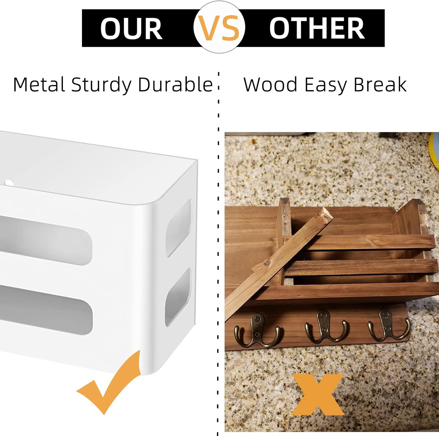 MKO Key Holder for Wall, 12.2In Mail Organizer Holder with Shelf, Metal Key Rack Adhesive Wall Mount, White