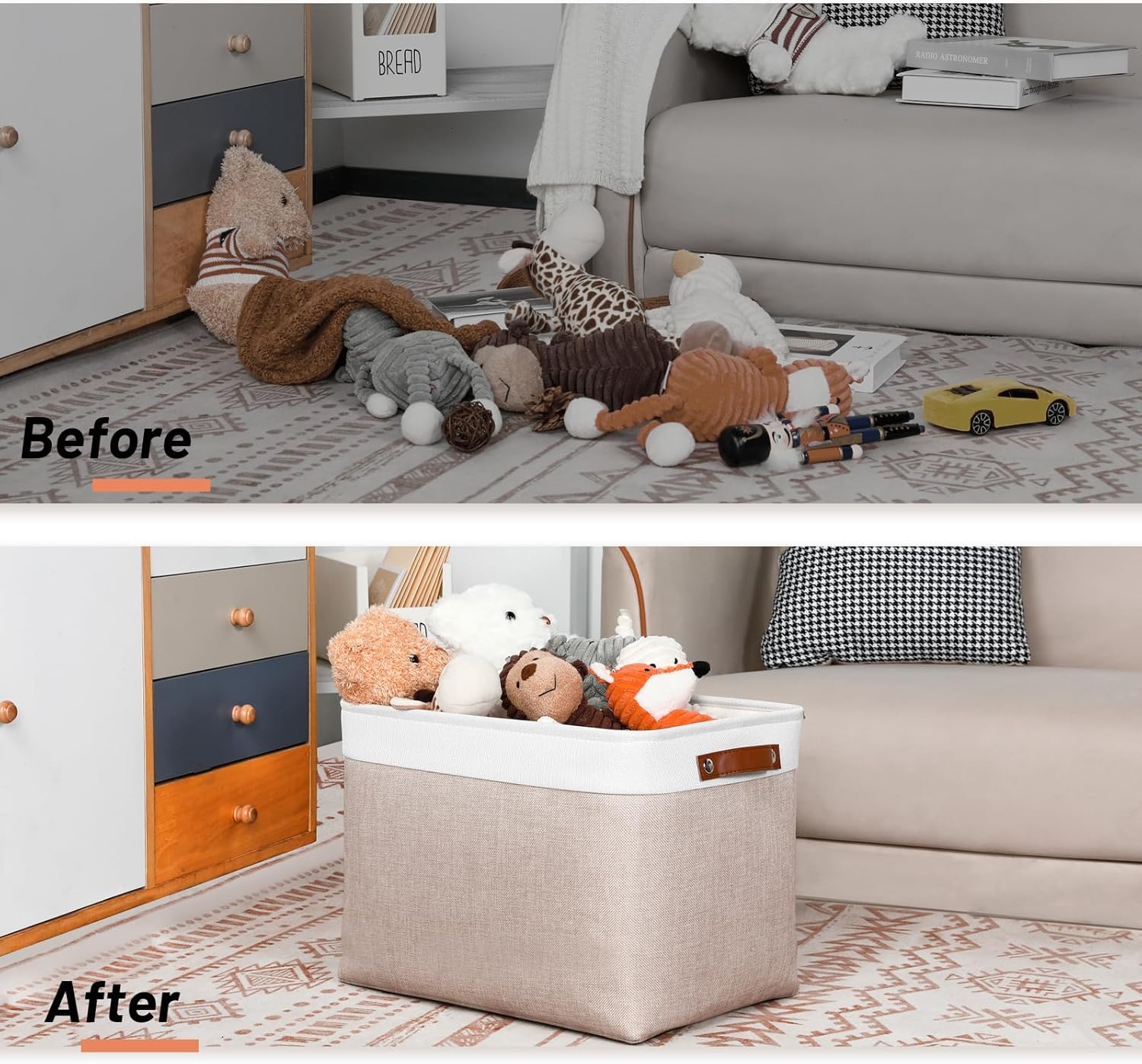 - 👏【Home Organizing Sollutions】--- These organizing storage bins with fun, trendy and adorable styles and colors can meet many storage needs. Linen, Home organization Baskets bring you organizing convenience and a sweet home. The fabric baskets with neutral colors can match a lot of home styles - keeping your home nice and tidy.