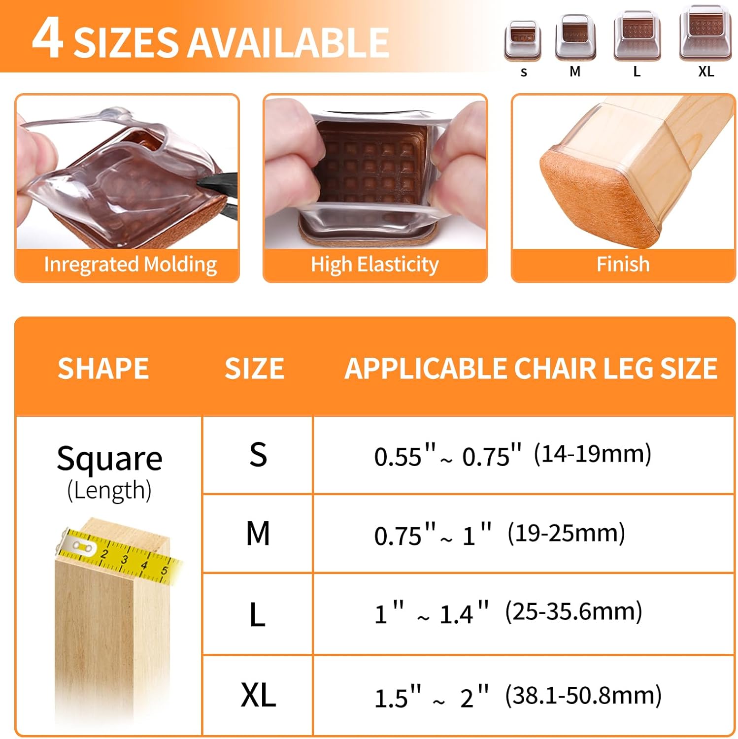 - ☛【Applicable Range】- Square M size fit Square Leg Side Length 0.75" to 1" (19-25mm) furniture legs.