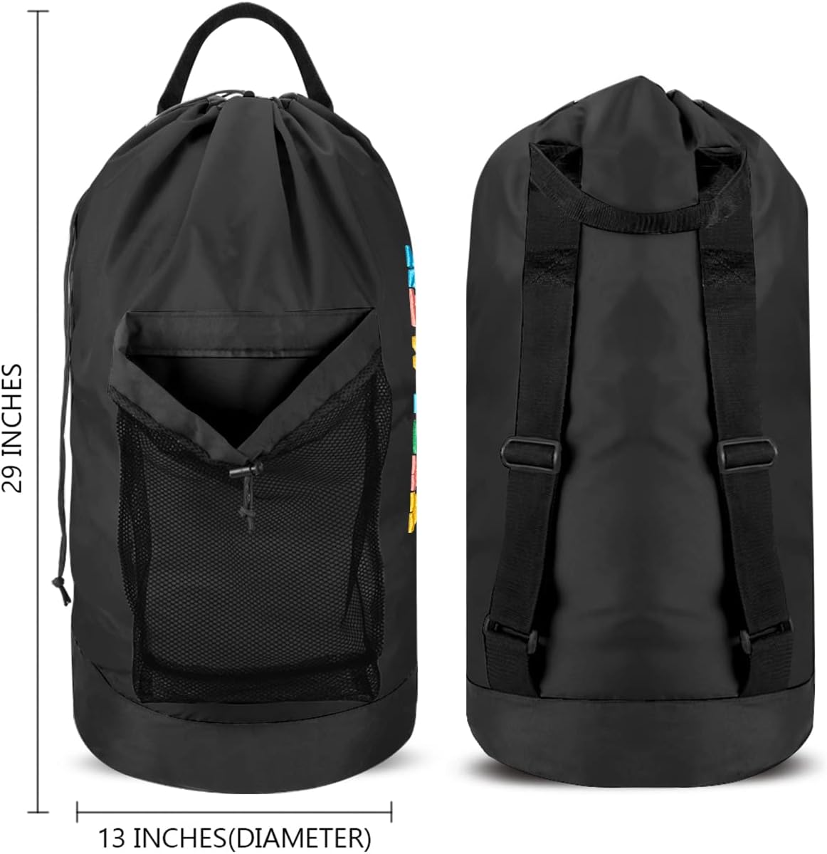 Dalykate Backpack Laundry Bag, Laundry Backpack with Shoulder Straps and Mesh Pocket Nylon Clothes Hamper Bag with Drawstring Closure