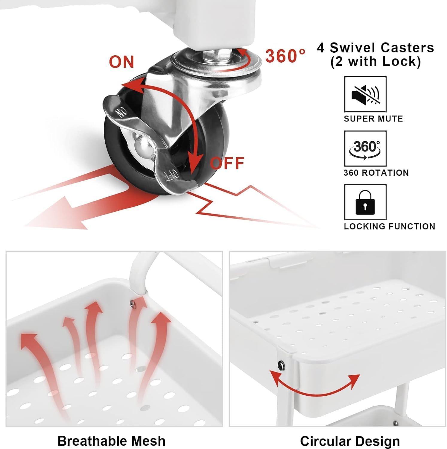 - Easy & Convenient to Move: This 3-Tier storage cart comes equipped with 4 wheels (2 lockable) and the handle design makes it easy & convenient to roll around to anywhere you need, or lock it in place.