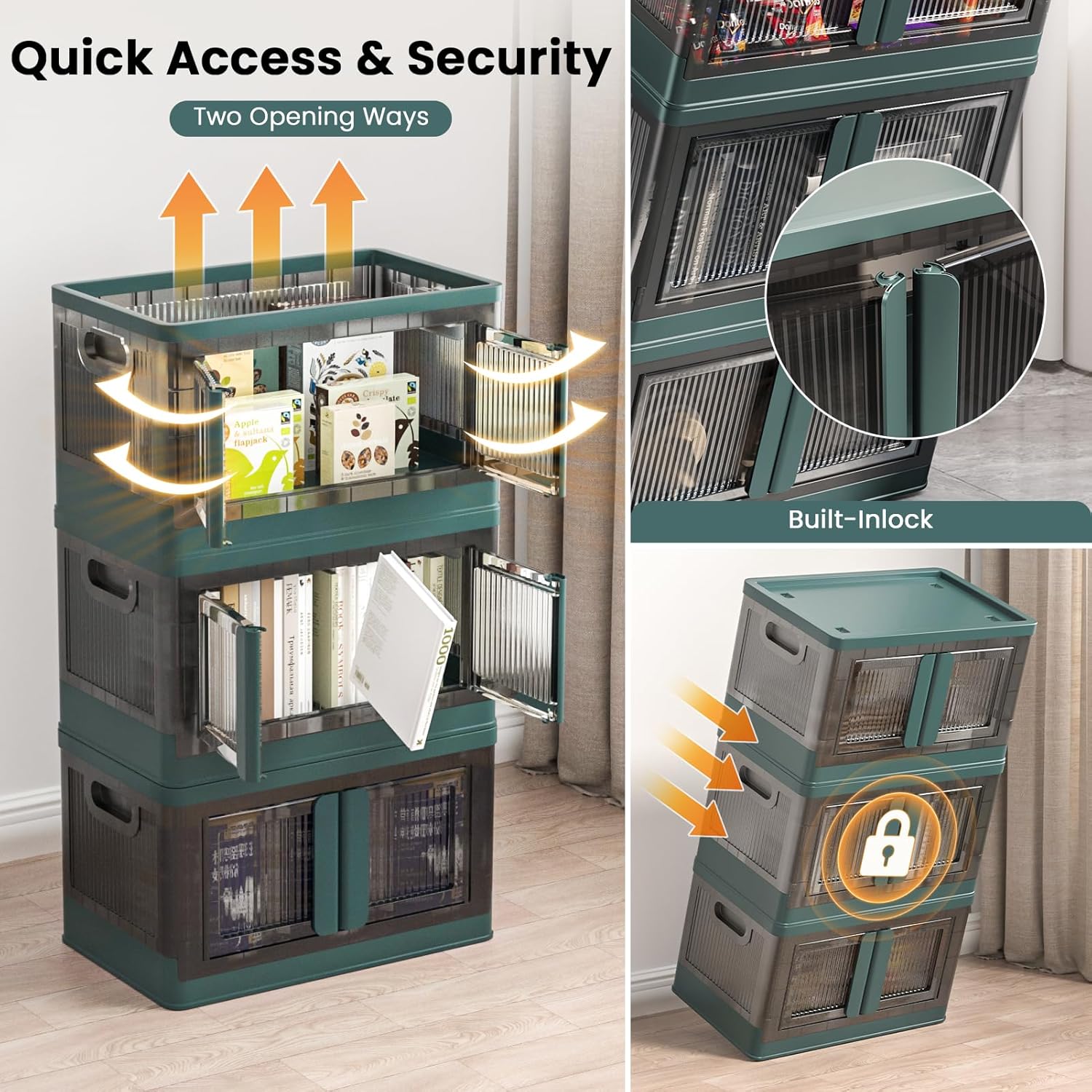 - Quick Access & Security: Clear doors let you see contents instantly, open-front design allows effortless item retrieval. Additionally, the built-in lock clasp prevents accidental opening during transport