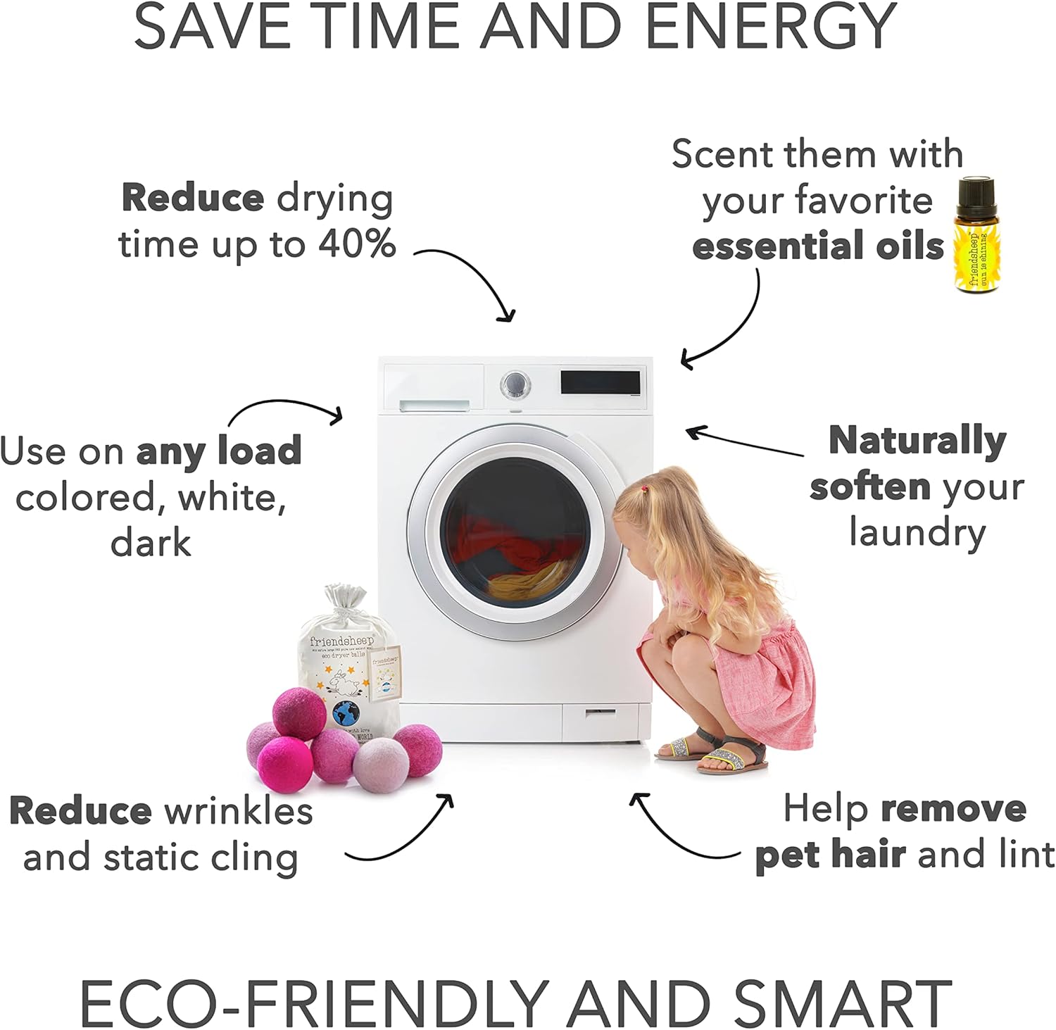 - ECO-FRIENDLY AND REUSABLE FOR 1000+ LOADS, replaces dryer sheets & liquid fabric softeners. Makes your laundry soft and fluffy, reduces wrinkles and static cling, and shortens drying time by up to 40% depending on load size. Your sheets and towels are fluffier, less balling and twisting. Makes you SAVE TIME, ENERGY, AND MONEY! All by keeping safe and healthy you, your family and the environment.