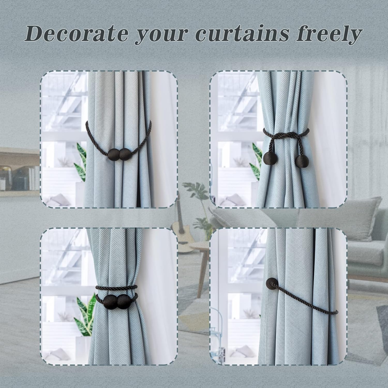 - 🌛[Variety of use methods, suitable for a wide range of scenarios] You can clamp the curtains in different elegant ways, and when you don't use the curtains, you can fix them anywhere, which is perfect for living room, bedroom, kitchen, dining room, bathroom and office.