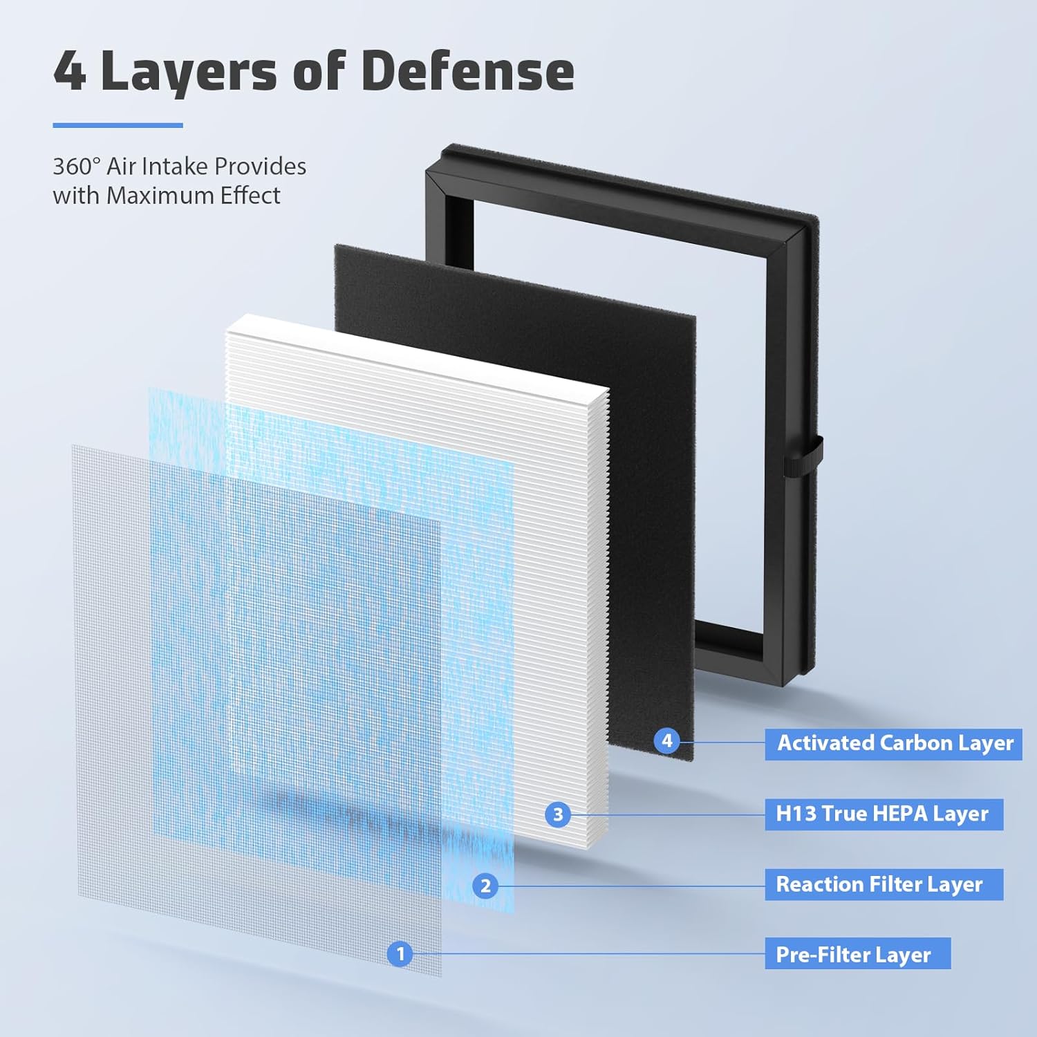 - 【4 stages of filtration】Our filter replacement is designed in 4-in-1 High-Efficiency System, Equip with Polypropylene Pre-Filter, Special Silver lons Filter ,True HEPA Filter layer and Activated Carbon Filter