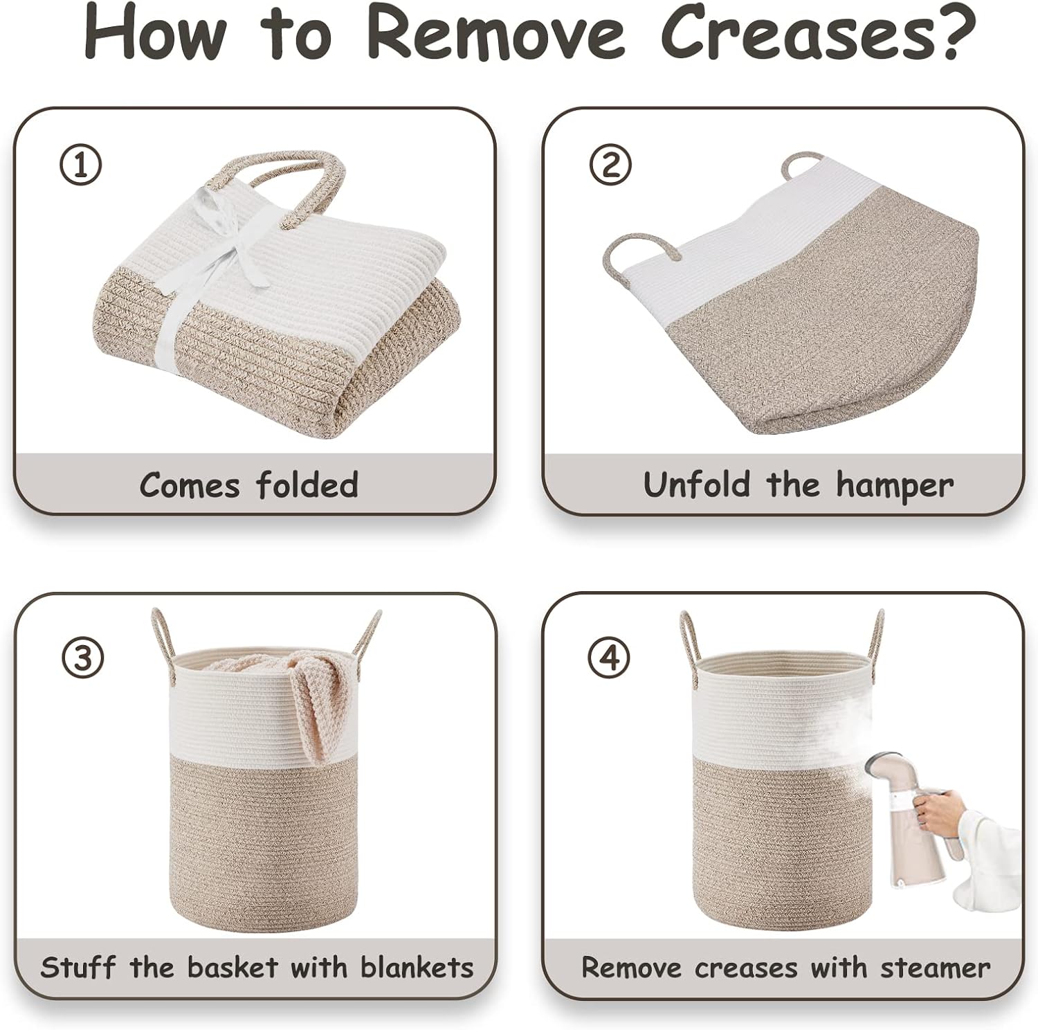 - ❤【Restore Elegant Shape】 To improve shipping efficiency, foldable woven rope hampers are packed compactly. You can put some blankets or small quilts in it and give it some time to regain its shape. Iron is a great idea to remove the creases.