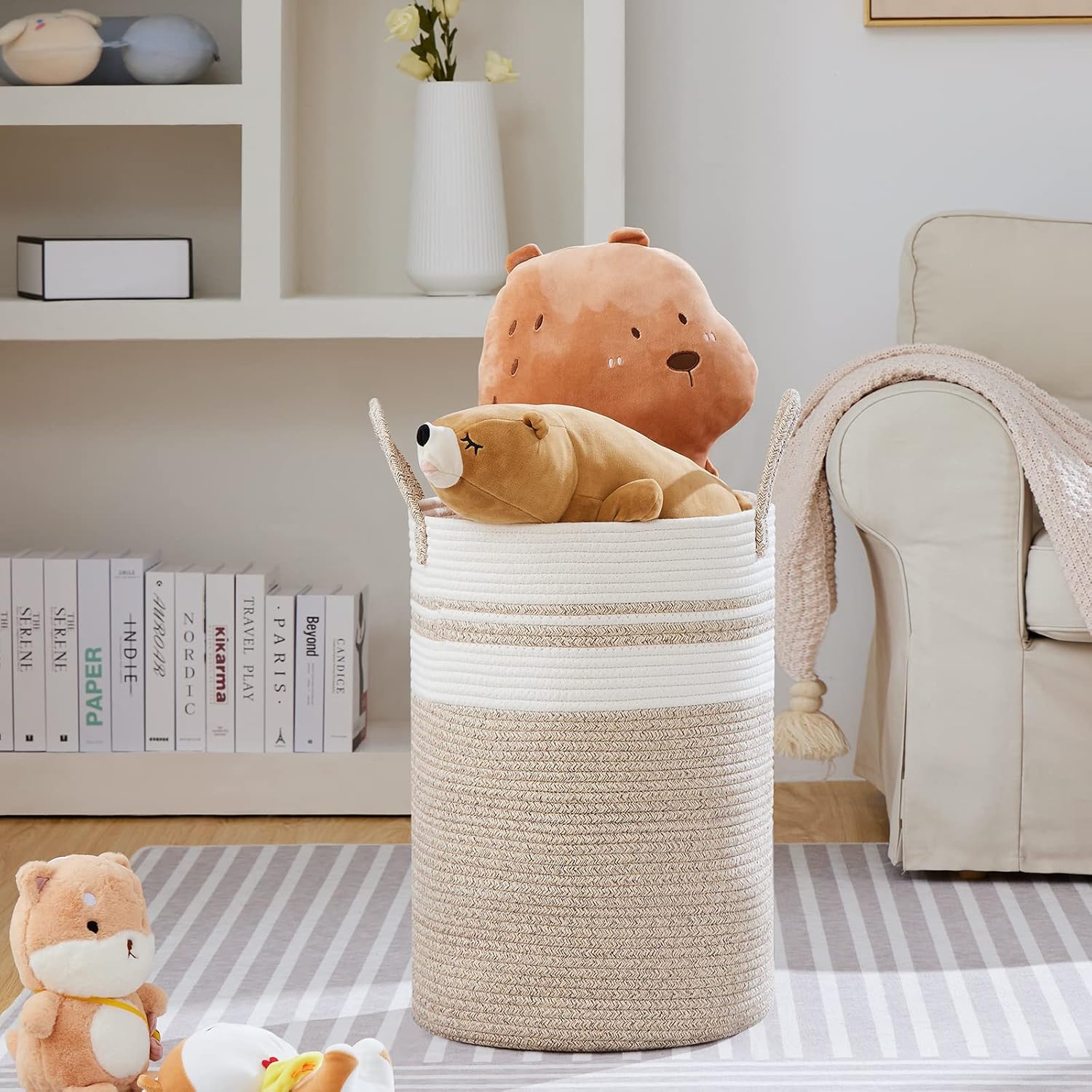 VIPOSCO Large Laundry Hamper, Tall Woven Rope Storage Basket for Blanket, Toys, Dirty Clothes in Living Room, Bathroom, Bedroom - 72L Brown & White
