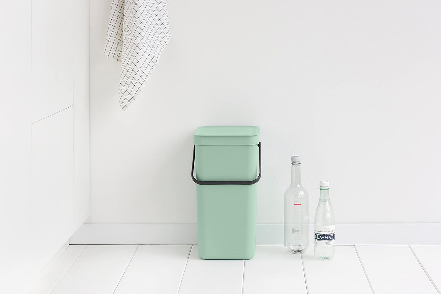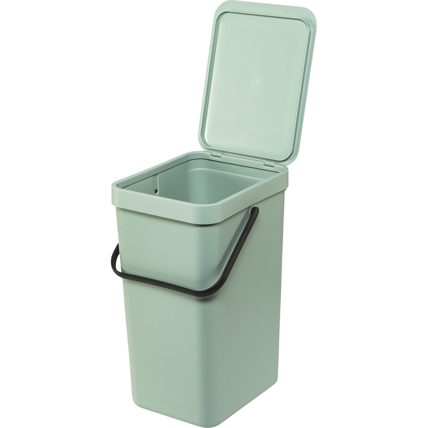 Brabantia Sort & Go Kitchen Recycling Can (4.2 Gal/Jade Green) Stackable Waste Organiser with Handle & Removable Lid, Easy Clean, Fixtures Included for Wall/Cupboard Mounting