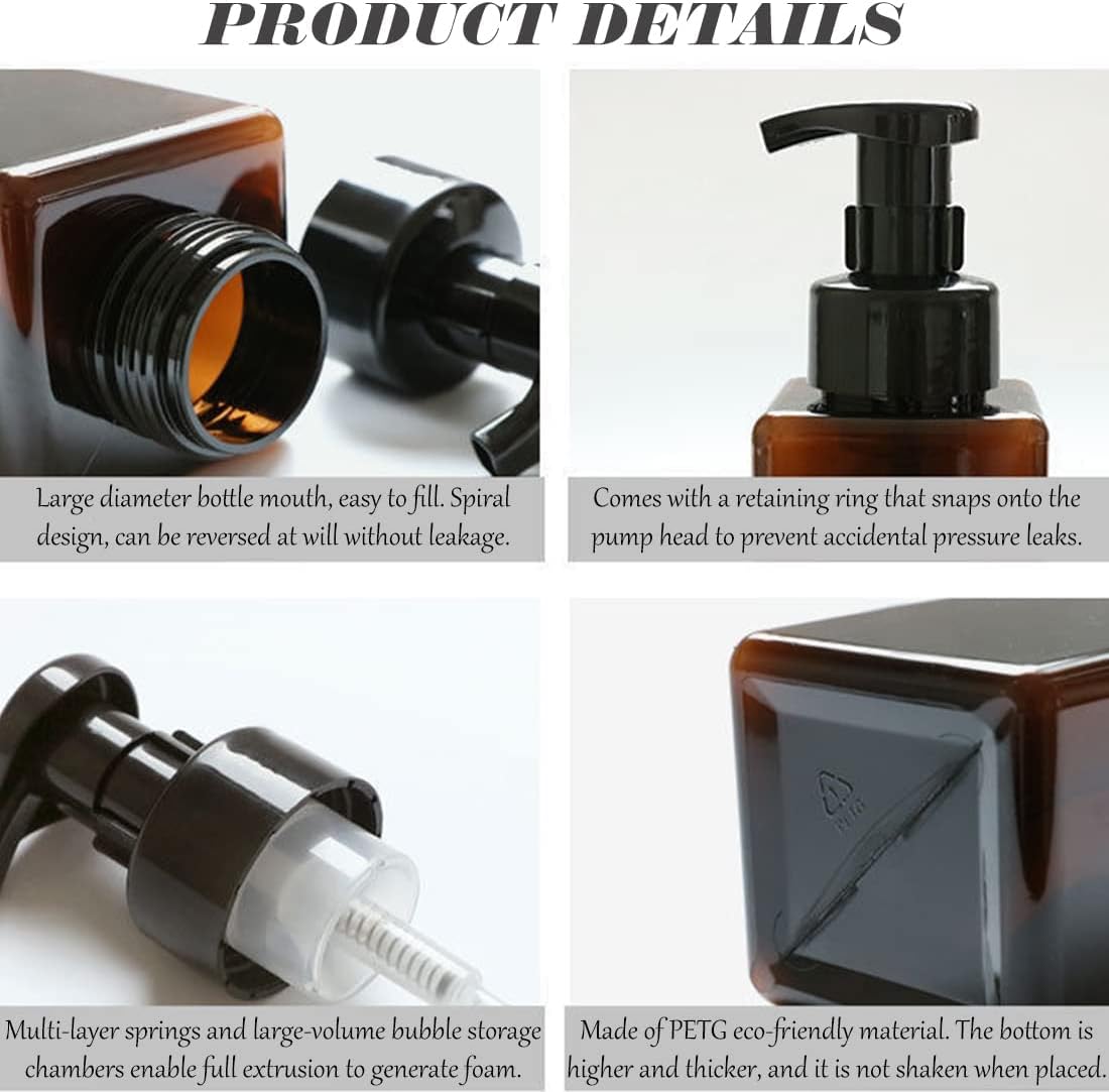 Foaming Soap Dispenser, 450ml(16oz) Refillable Modern Square Pump Bottle for Shampoo, Body Wash, Liquid Soap, PETG Plastic Empty Soap Dispenser for Kitchen, Bathroom, Hospital. 2 Pcs (Brown)