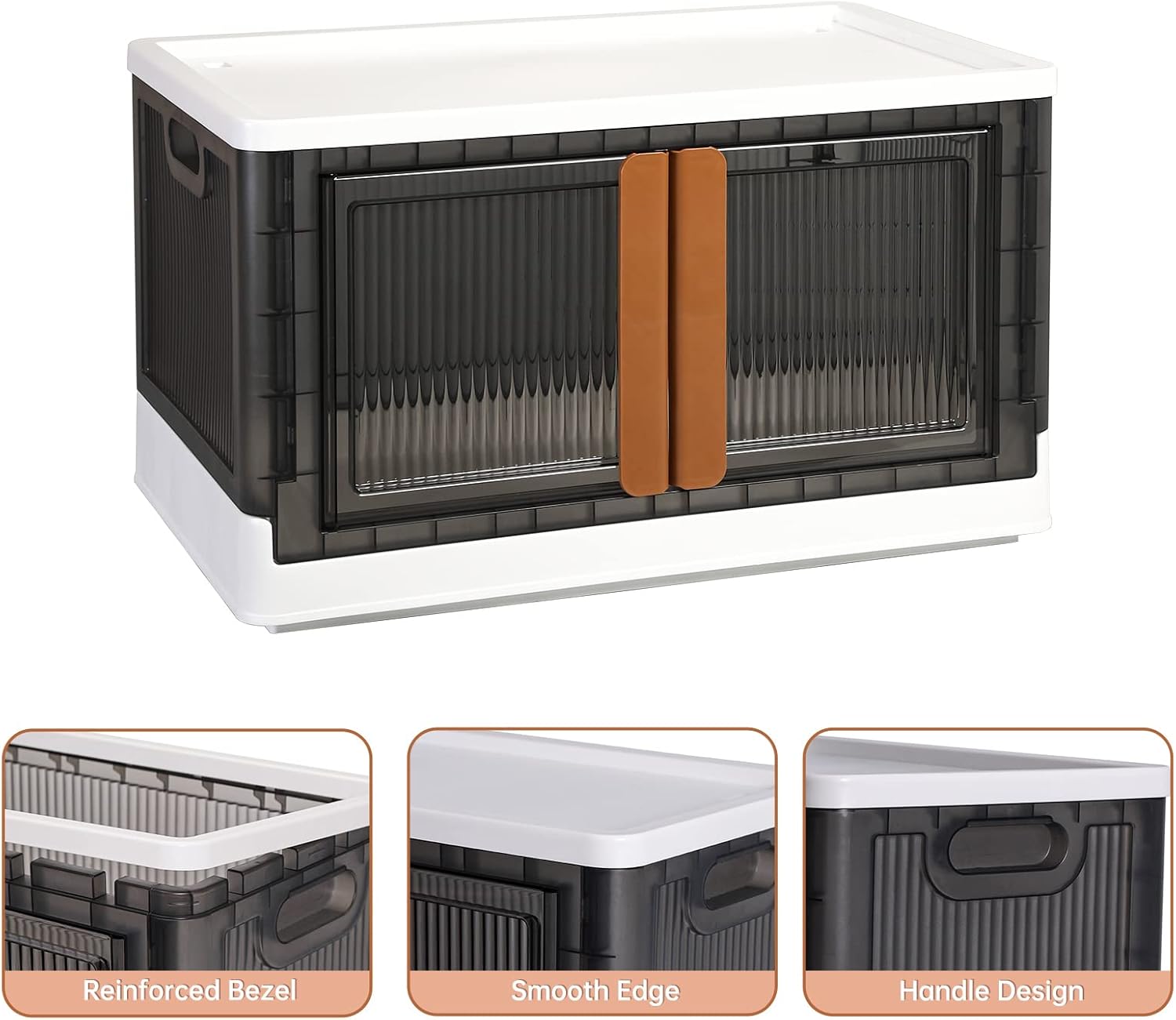 HAIXIN Storage Bins with Lids - Collapsible Storage Bins, Wardrobe Closet Organizer, 19 Gal Stackable Toy Storage, Foldable Plastic Storage Container with Door, Crate for Book Storage (3 Pack)