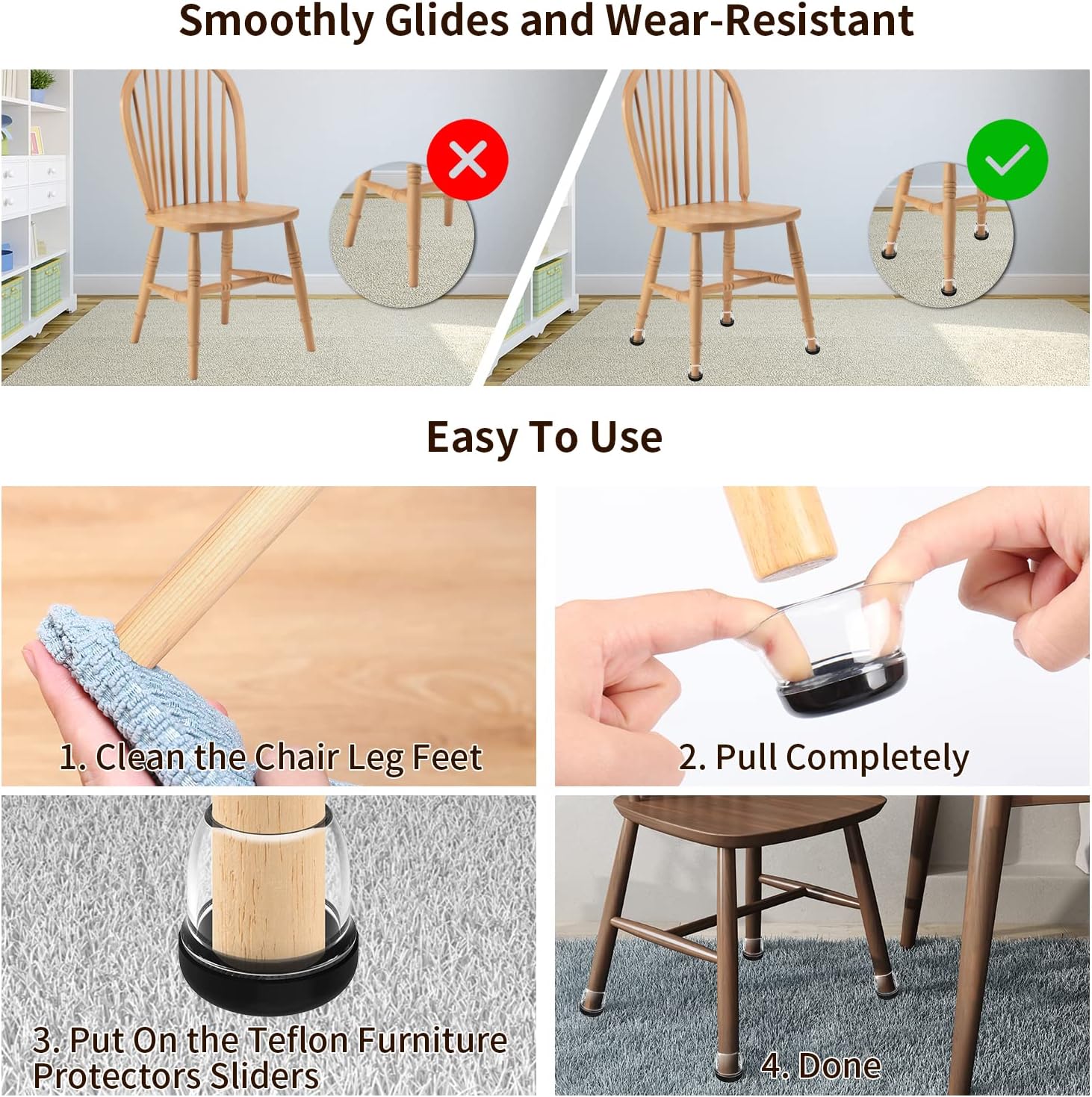 - ☛【Quiet Smoothly Glides】- Chair legs sliders cups is upgraded and thickened bottom made of ultra-smooth teflon material for smooth and resistance-free moving table leg covers on carpet. Table Foot Protector Sliders with easy to move without noises.