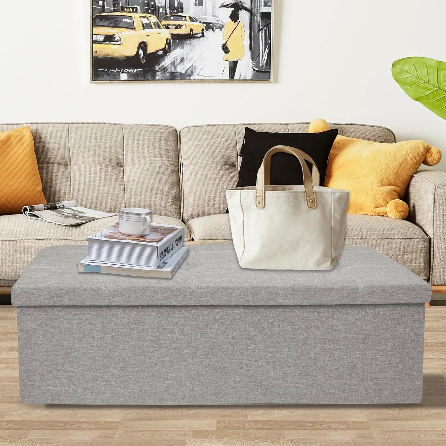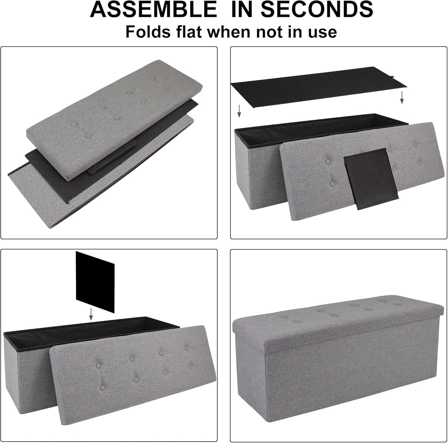 GLAXYFUR 43 Inches Folding Storage Ottoman Bench, Storage Chest, Footrest for Entryway, Living Room, Holds up to 660 lb, Light Grey