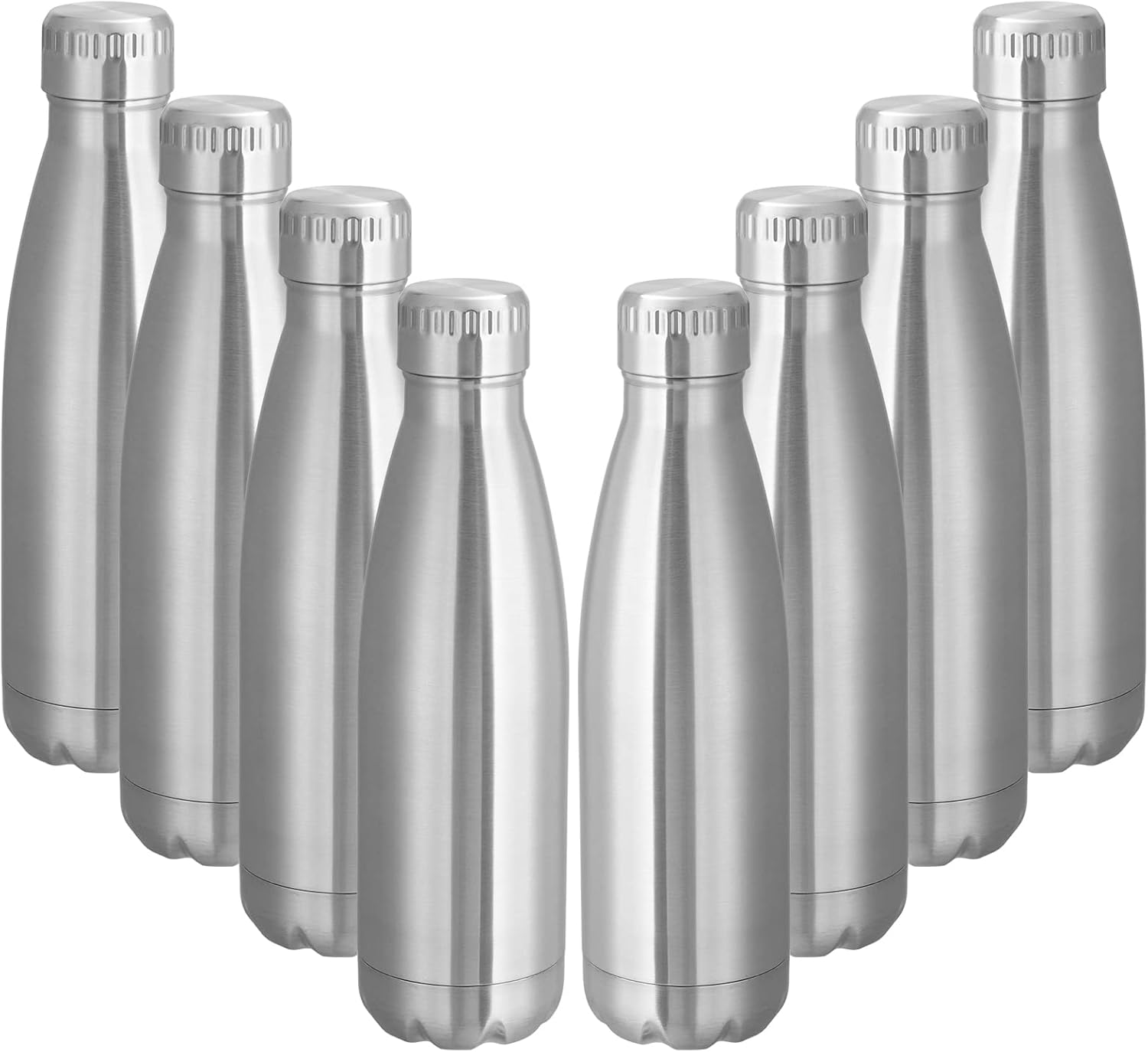 VEGOND 17oz Stainless Steel Water Bottles Bulk, Reusable Metal Sports Water Bottle Keeps Drink Hot and Cold, BPA Free Double Wall Vacuum Cola Shape Insulated Water Bottles for Camping Gym, 8 Pack
