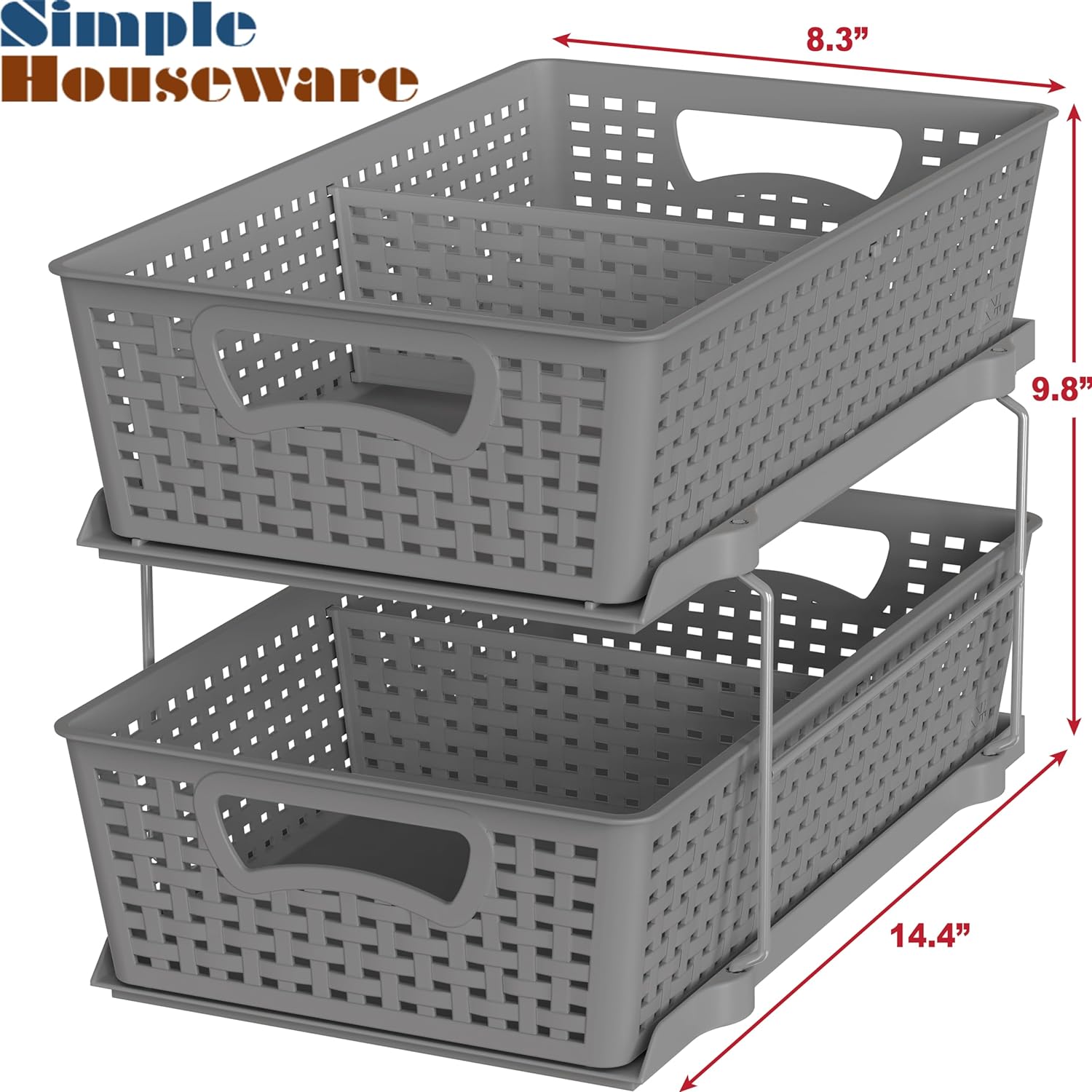 Simple Houseware 2 Tier Bathroom Organizer Tray Pull-Out Sliding Drawer/Under-Sink Storage, Grey