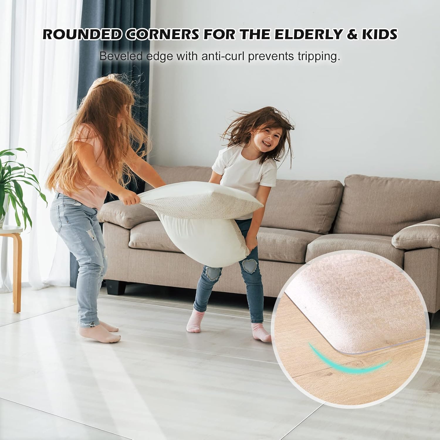- THE CHAIR MAT WITH NOISE REDUCTION DESIGN: The rough surface with embossing(UPWARD), the caster rotates smoothly. The bottom surface is smooth(DOWN) for prevents mat from slipping. Even if you move the chair, it will not scratch the floor, with excellent noise reduction. Designed for use on all hard floor surfaces such as tile, laminate, hardwood etc. NOT suitable for carpets.