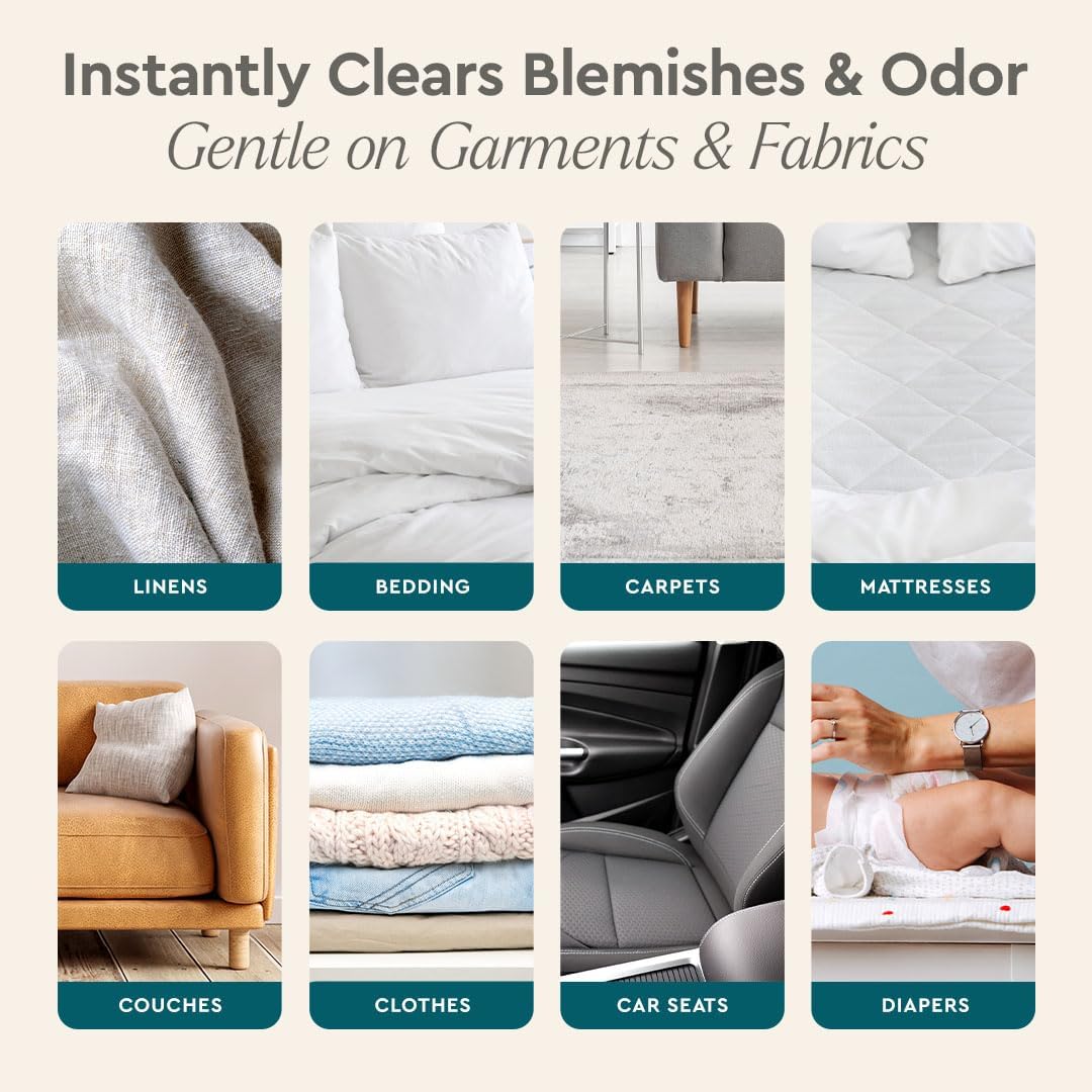 - Removes Hundreds of Stains & Odors in Seconds - Our spot cleaner for carpet and upholstery eliminates grass, berries, blood, sweat, oil, red wine, cosmetics, dairy, avocado, turmeric, watermelon, pet accidents, grease, deodorant, spills, and more.