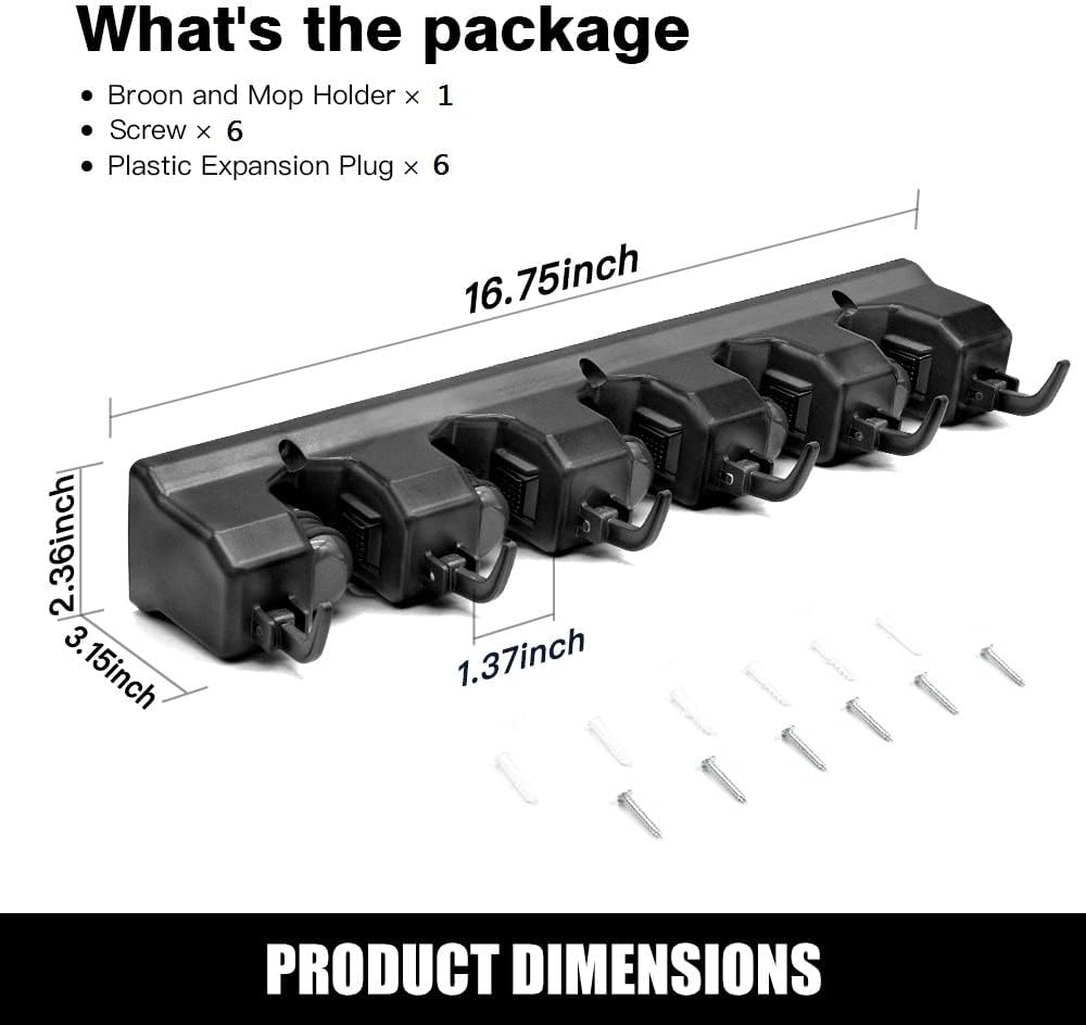 - Heavy Duty: Mop holder grip everything tightly and securely. Each rolling ball holds up to 6.5 pounds of weight(smooth rod is up to 3 pounds), holder can hold up to about 11 tools in total. Made of high quality ABS and slots and screws.We upgraded our products after 2018 July 1st, and we improved the quality of this products that are easy-to-drop. Now the products can grip everything tightly and securely.