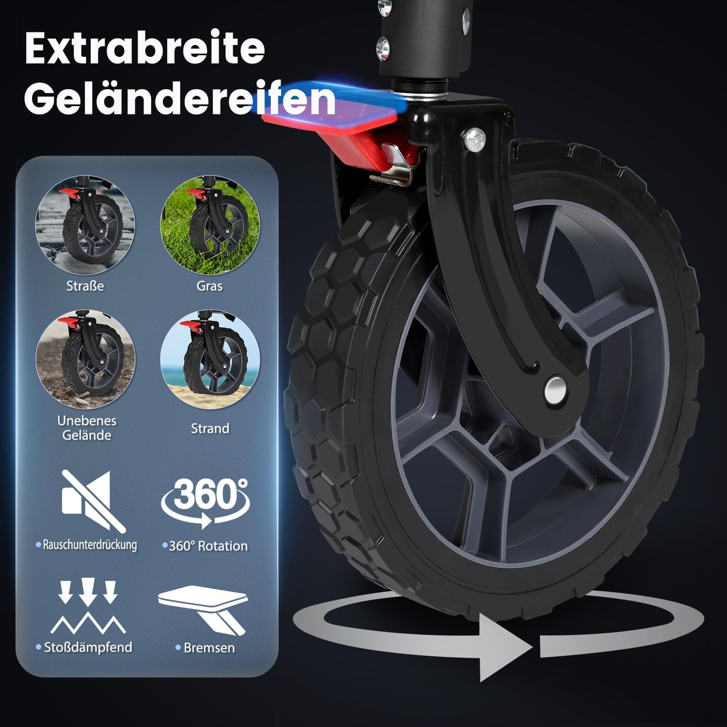 - Special Feature : Adjustable Handle, Big Wheels with Brake, Built-In Cup Holder, Extra Storage, Heavy Duty