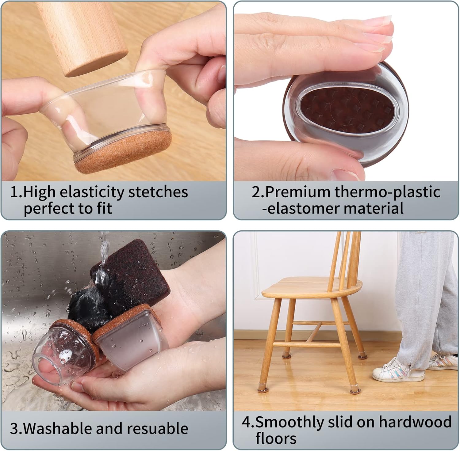 - ☛【Reduce Noise and Prevent Scratches】- Dining table leg covers for hardwood floors more durable to friction and no scratches. Felt furniture pads on the bottom reduces resistance and allow easy, smooth movement of furniture.