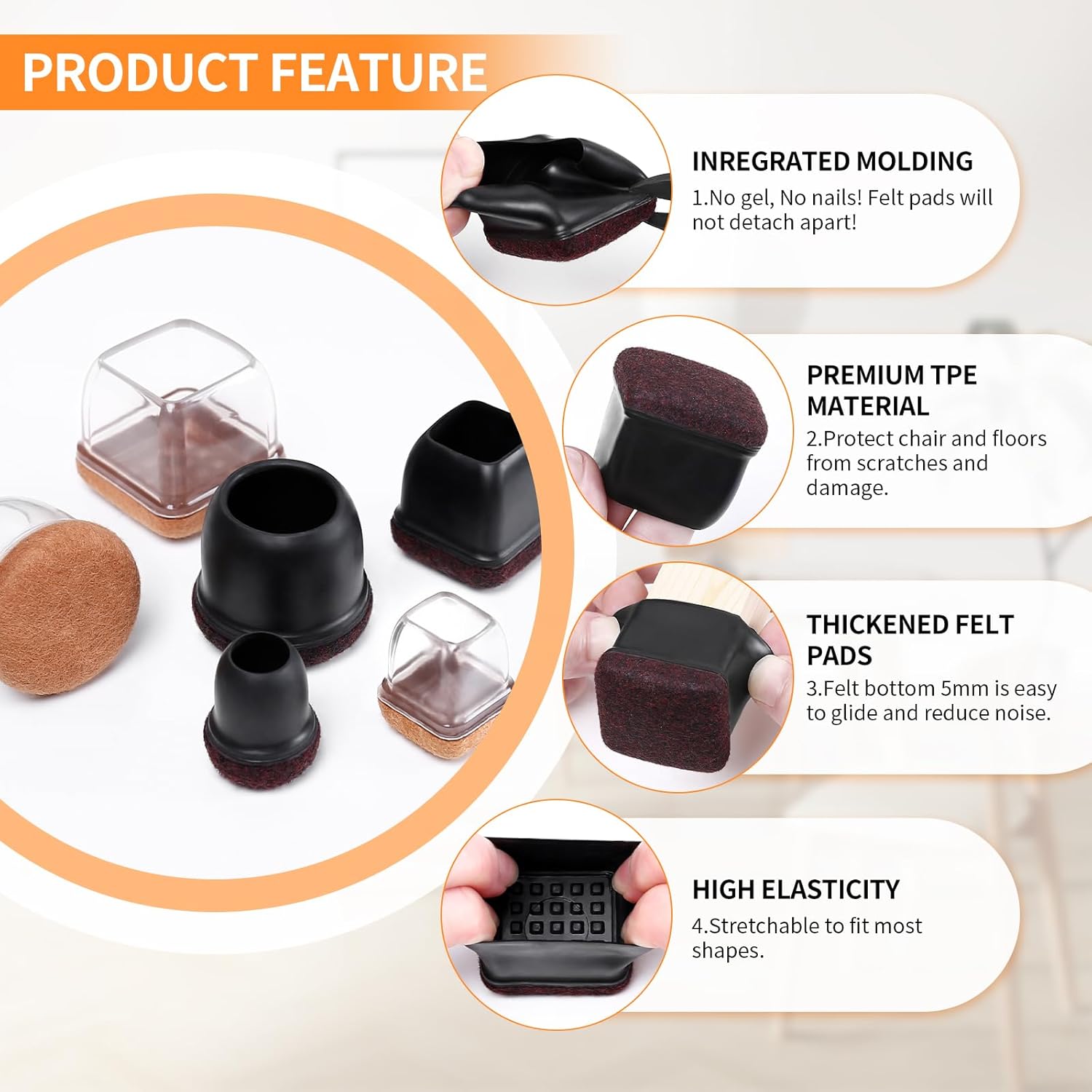 - ☛【Not Easy to Fall Off】- Chair leg covers is made of premium soft thermo-plastic-elastomer material, which is stretchable. They are easy to slip-on, no need to stick, and have strong adhesion, it tightly wrap legs, and not easy to fall off.
