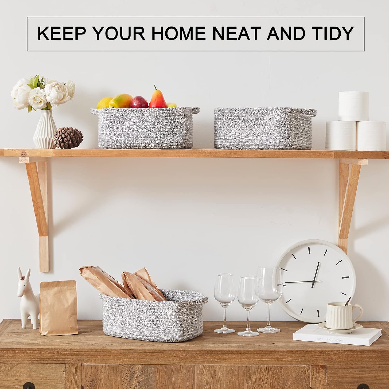 - 100% Cotton Rope Storage Baskets:OIAHOMY woven storage baskets are made of 100% natural cotton, chemical free and safe for kids and pets. It will not scratch your furniture and floor