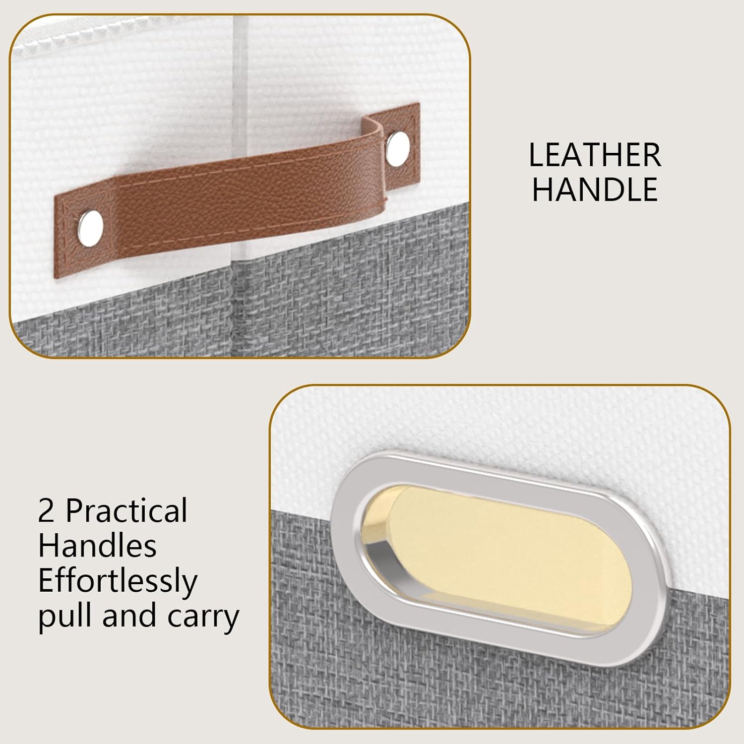 - Design of Storage Box Handle : Adds the vision of fabric storage bins, making it easier to lift the closet storage bins off the floor or pull out from a shelf to access your items, 1 handle is made of stainless steel, not easy to rust