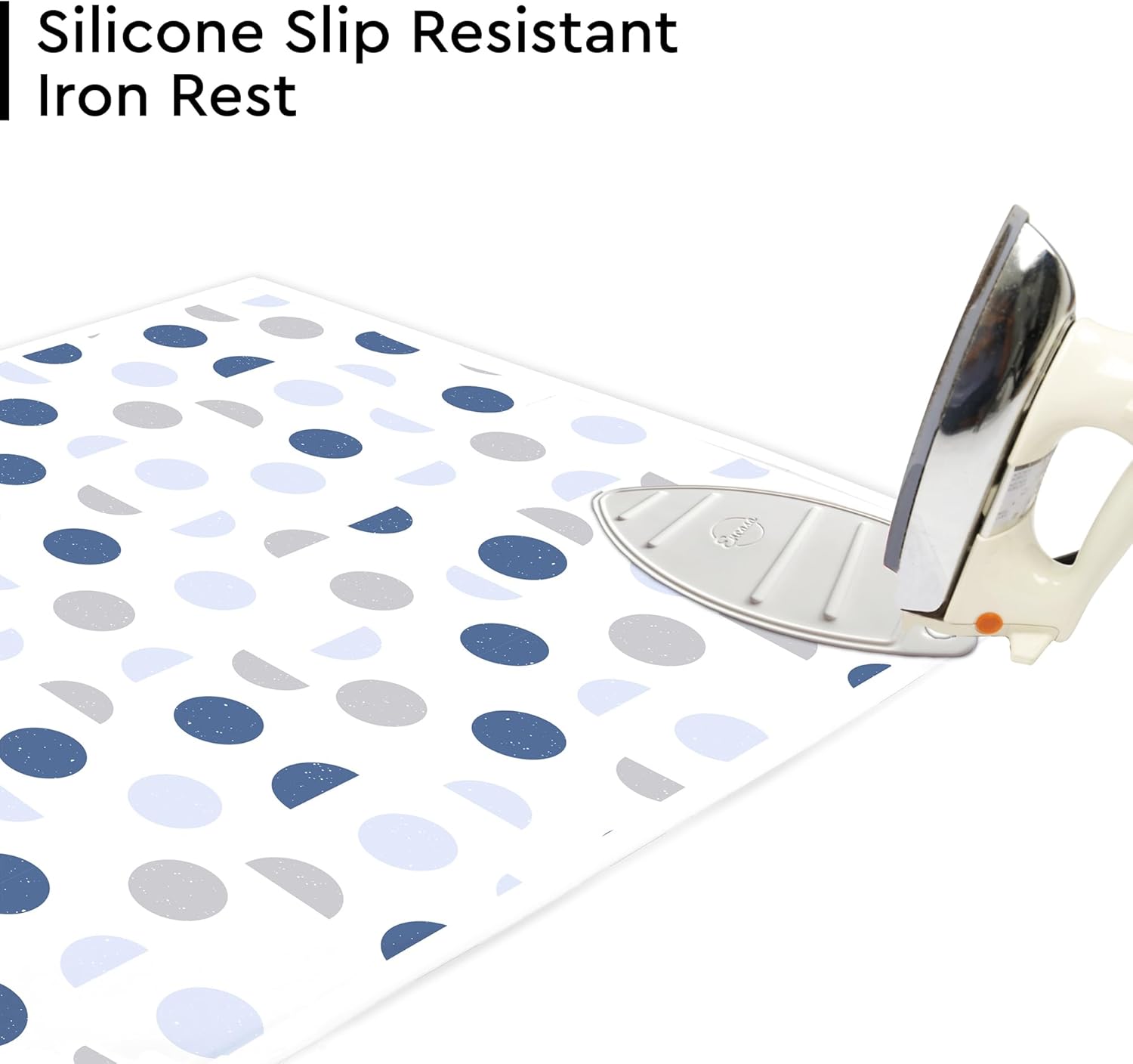 Encasa XO Ironing Mat/Pad (Large 48"x28") with 3mm Padding & Silicone Iron Rest for Steam Pressing on Tabletop or Bed - Heat Resistant, Portable, Quilting & Travel Blanket - Blue Moon