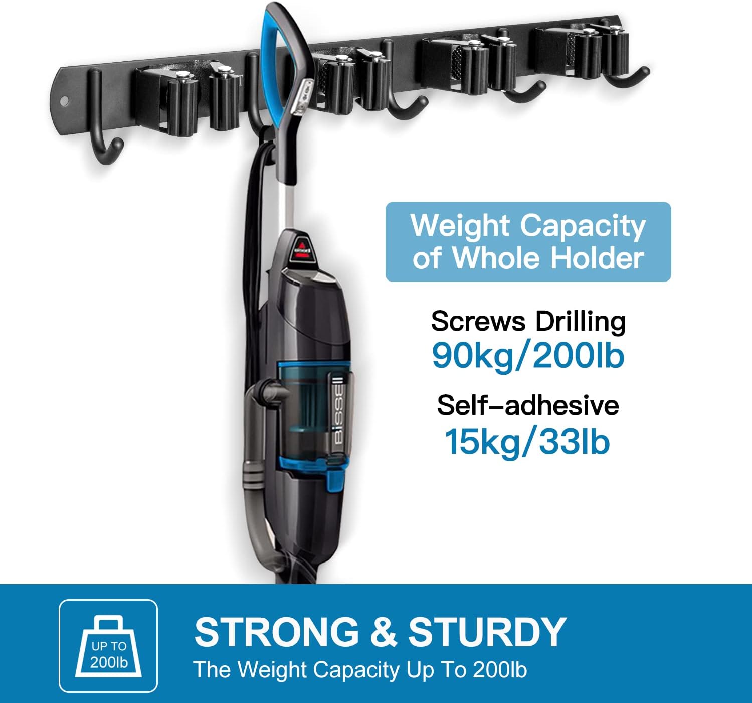 - HEAVY DUTY: Mop holder grip everything tightly and securely without slip. It can hold up to about 9 tools in total. Keep your place cleaned up and keep things organized