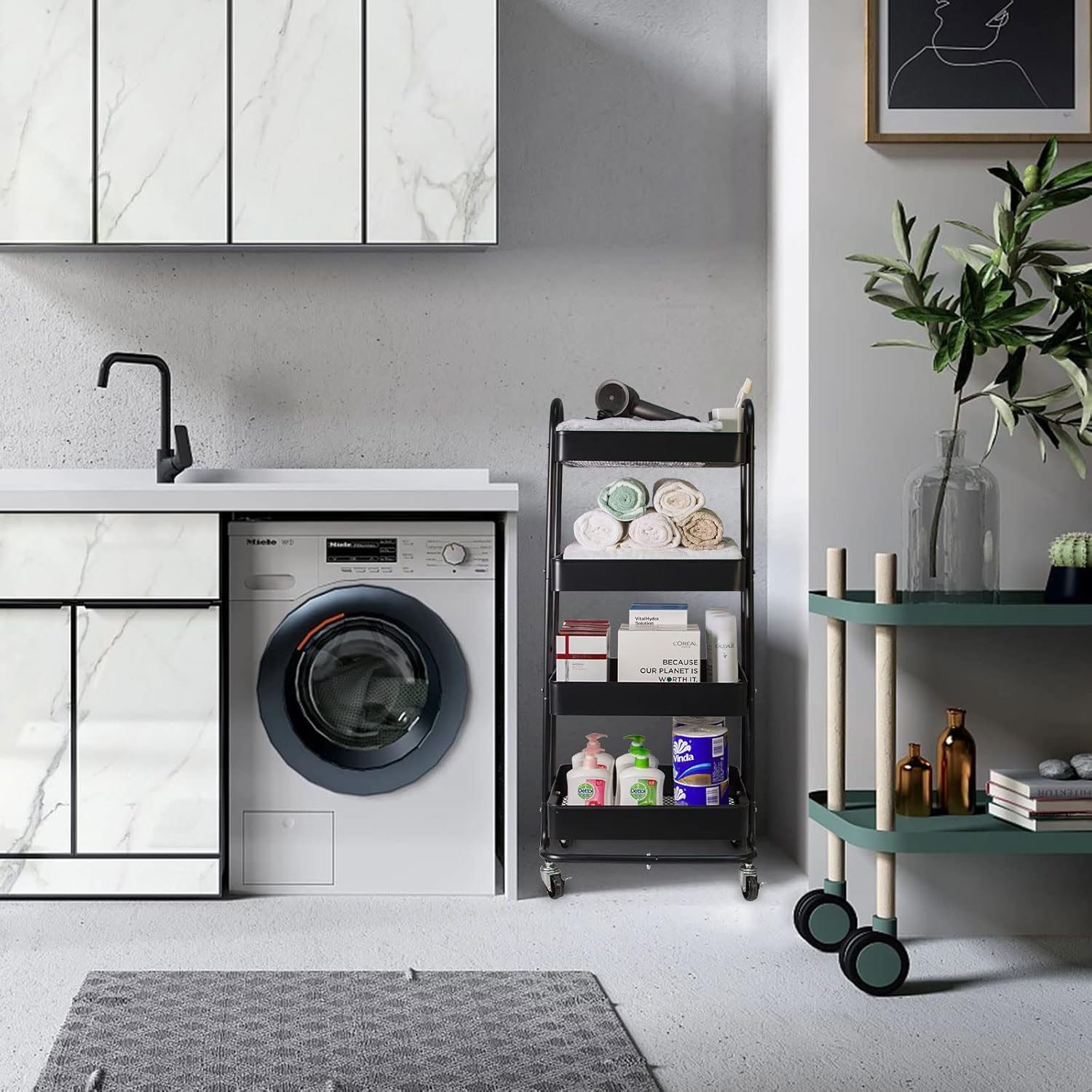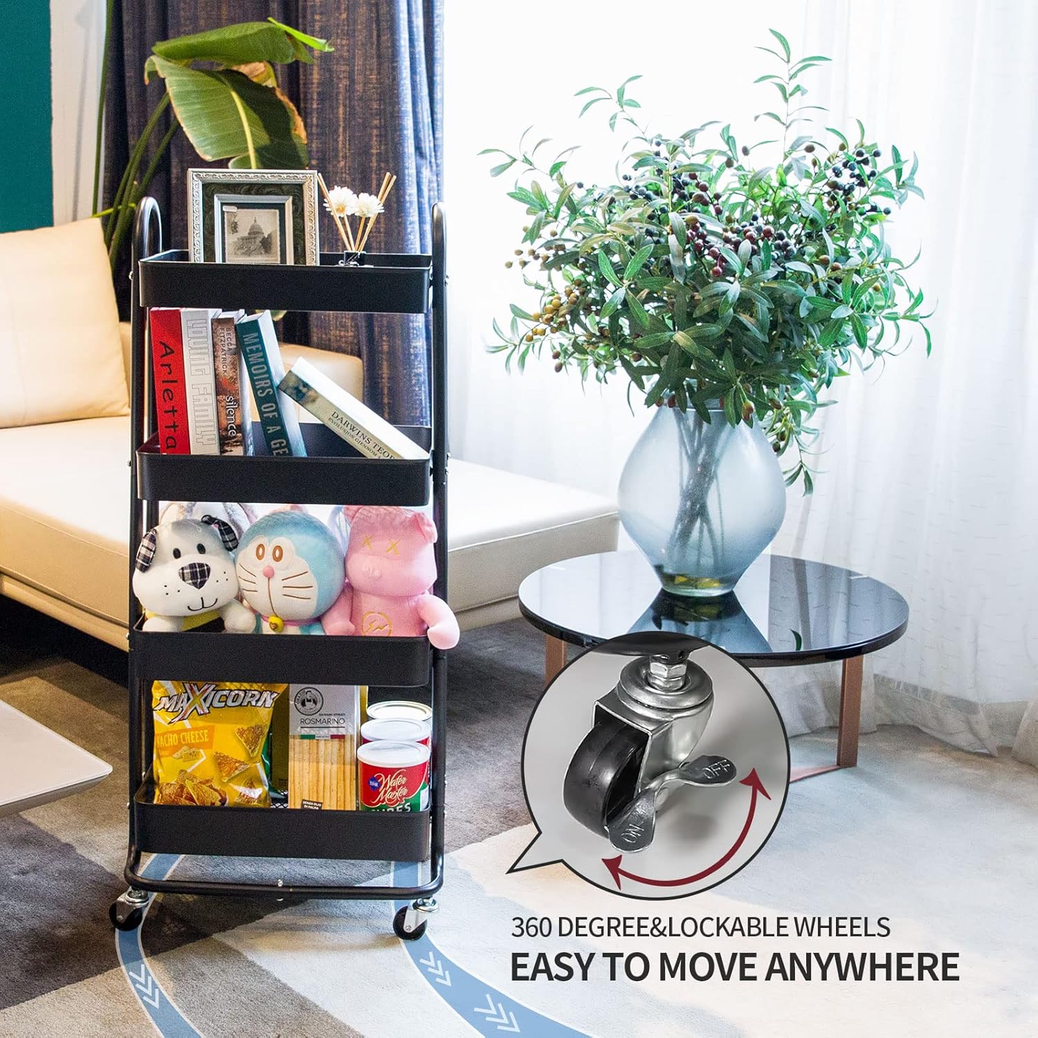 - [Multifunctional Storage Cart] This 4 tier rolling utility cart is easy to store and transport. It can be used as a tools cart, service cart, book cart, art cart, organization rack and more. Suitable for your office, bedroom, kitchen, bathroom, living room, baby room, laundry room, pantry, studio, classroom, and craft areas.