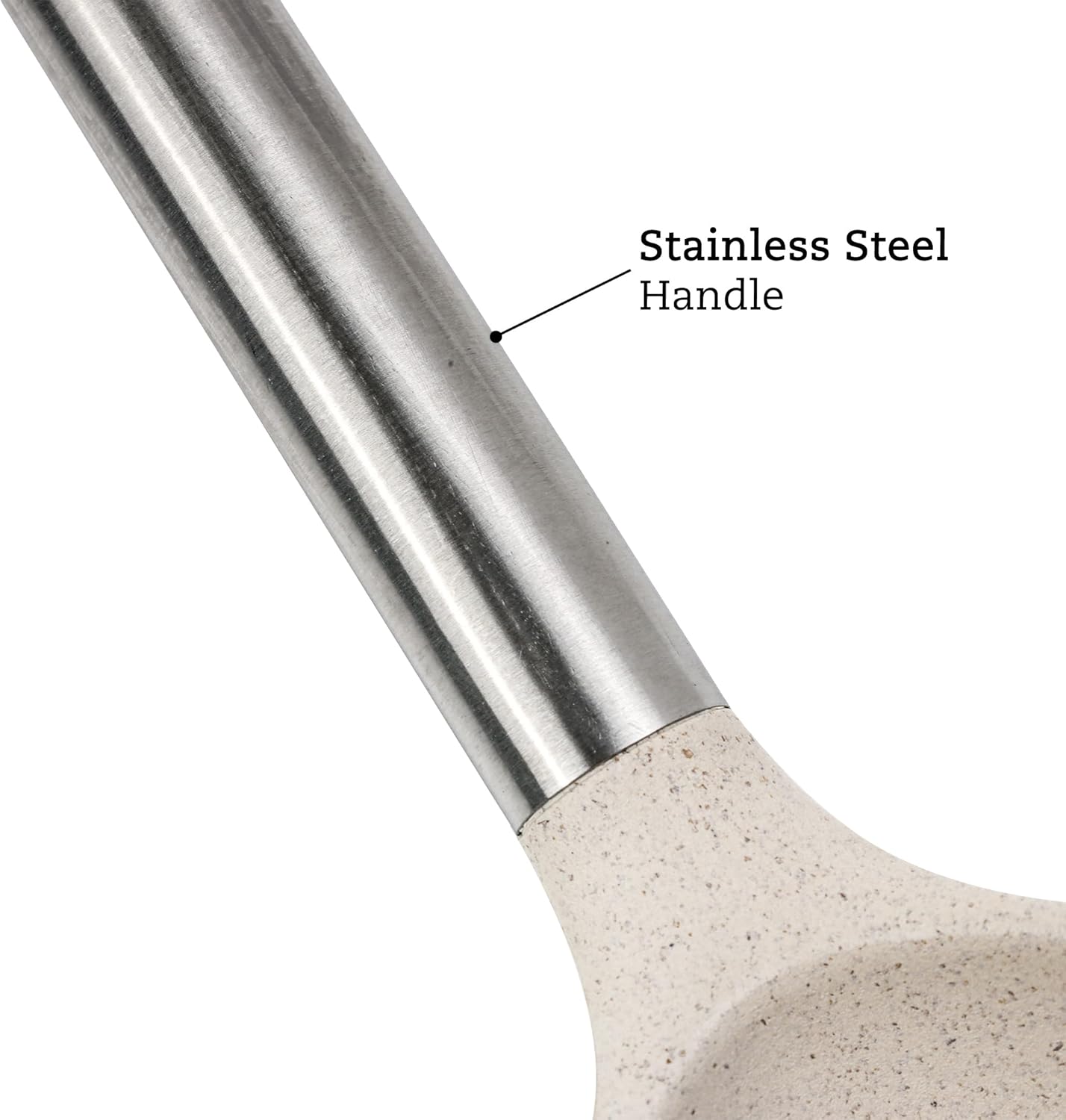 - STAINLESS STEEL HANDLES: Sturdy handle made of durable, corrosion resistant stainless steel that won’t rust so you can count on it to last; Comes with handy slot in handle for easy hang storage if preferred; Trendy cream color will fit nicely with any kitchen decor