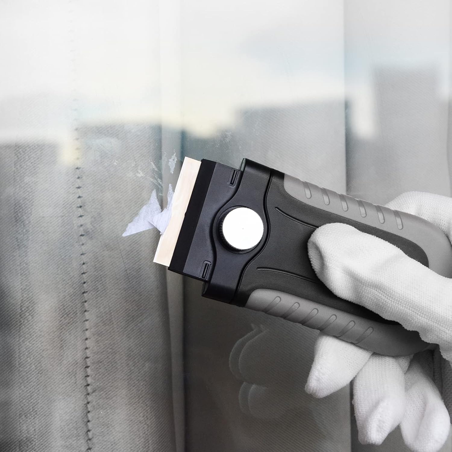 - Razor Blade Scraper Tool with stainless razor blades perfect for use on glass, ceramic, and induction stovetops and cooktops, and is great for removing burnt food and gunk, as well as scraping off in the bathroom.And also effectively for removing a variety of other materials, including window paint, shims, paints, stickers, coloring film residues, wallpaper, and borders around the house