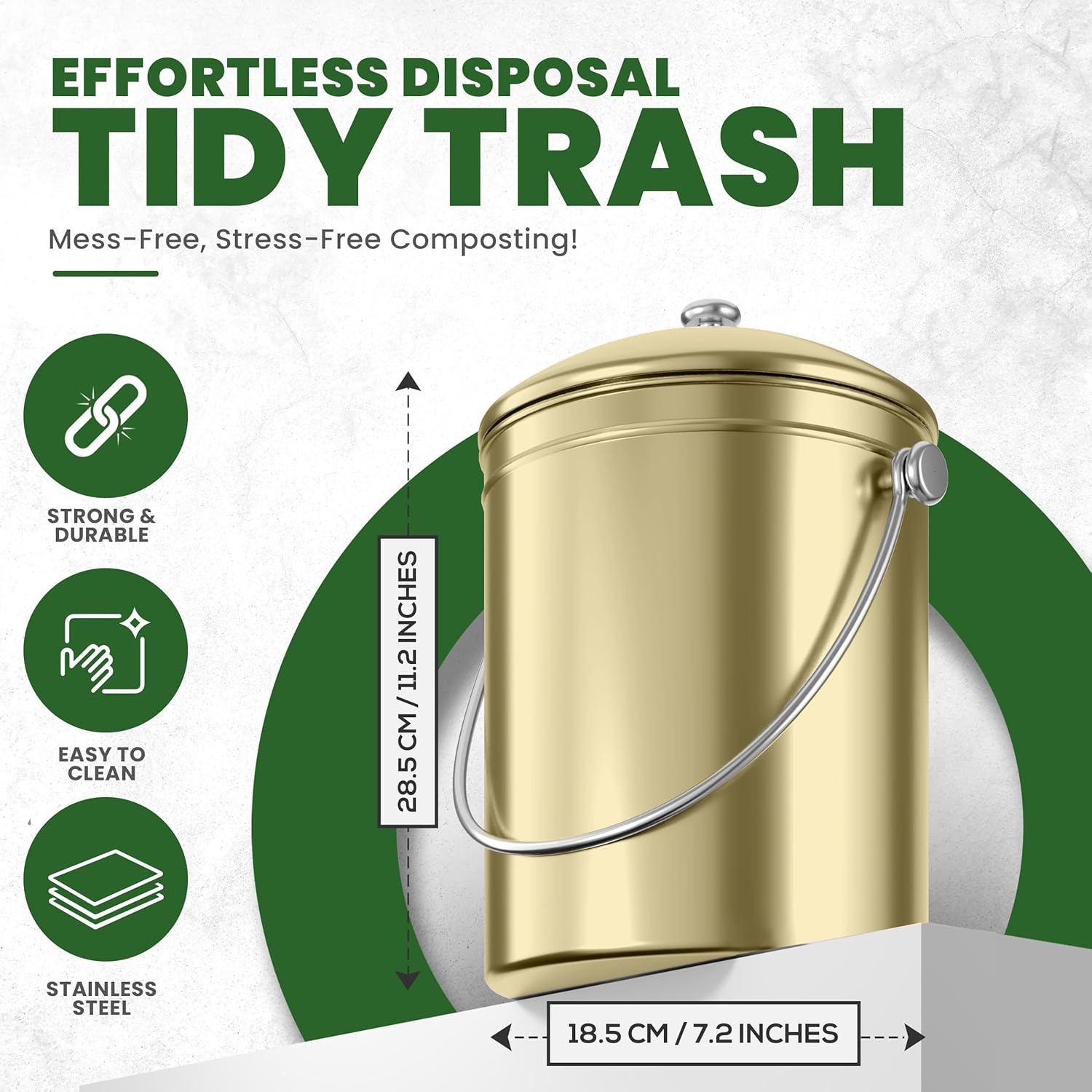 - This compost bin having capacity of 1.3 gallon is manufactured with stainless steel for optimal longevity and durability that won't scratch, crack or chip