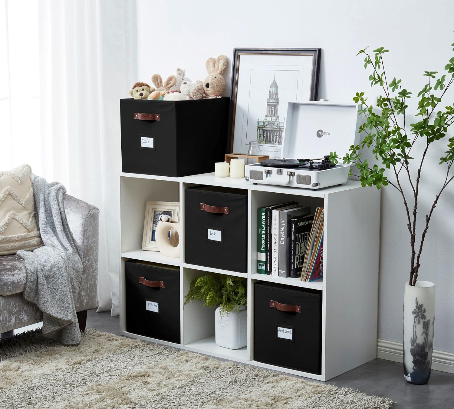 DECOMOMO Storage Baskets, 13x15x13 Storage Cube Bins with Labels for Organizing Shelves Kallax (Kallax / 4pcs, Black)