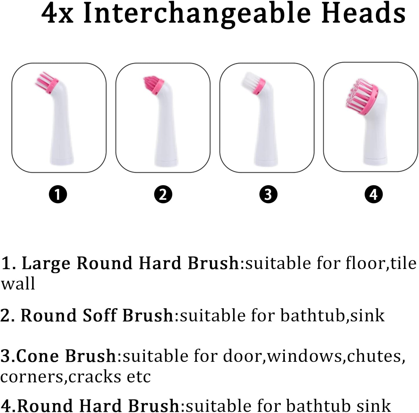 Electric Brush with 4-in-1 Multiple Brush Heads, Cordless Motorized Cleaning Brush for Bathroom, Toilet, Kitchen, Tile, Crevice